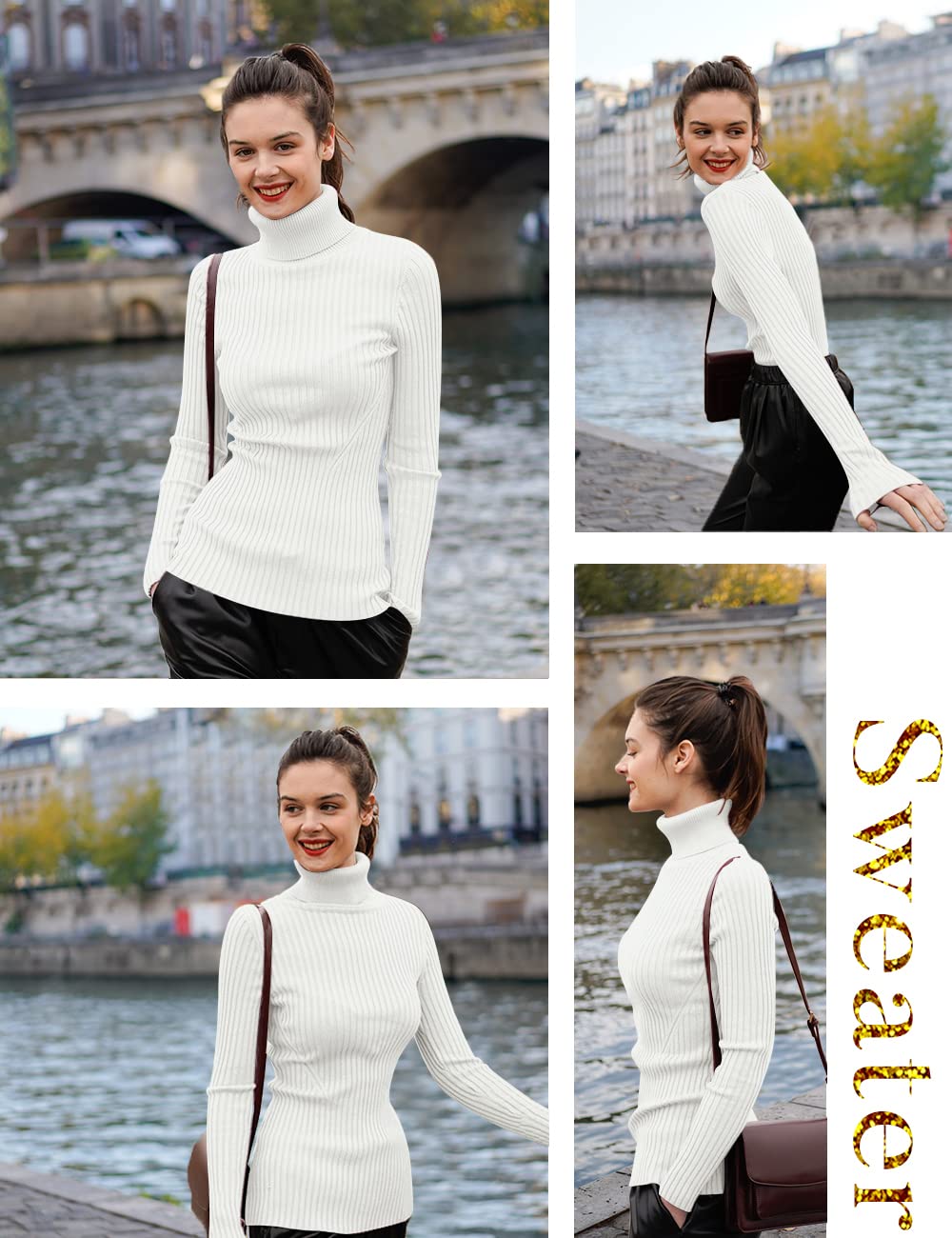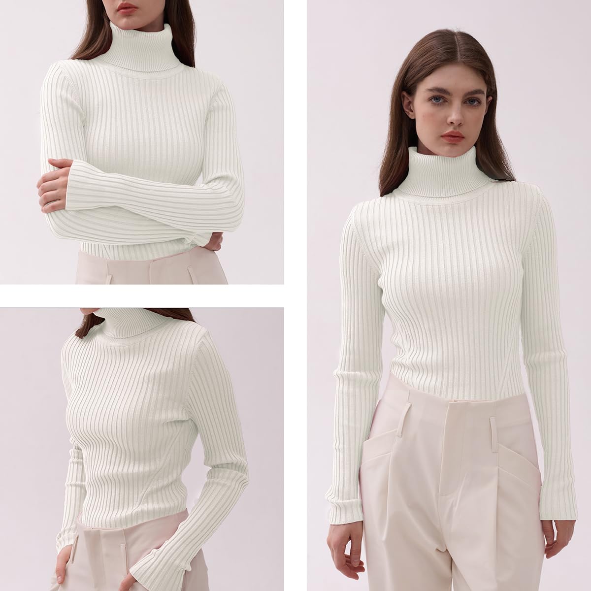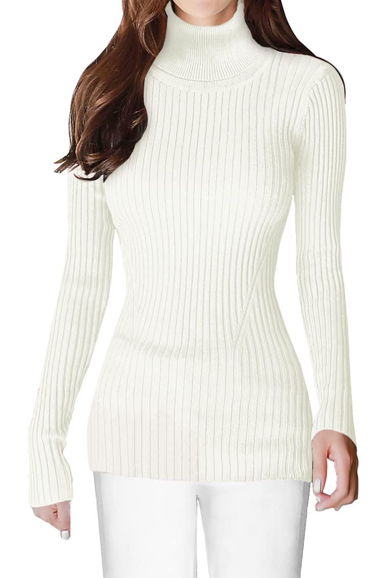 Turtle Neck Ribbed Sweater -- Knitted by Germany STROLL Machine to Ensure its High Quality Material: Highly Stretchable Viscose (Comfy Silky Smooth Feeling and Showing Off your Sexy Female Curve Silhouette)
