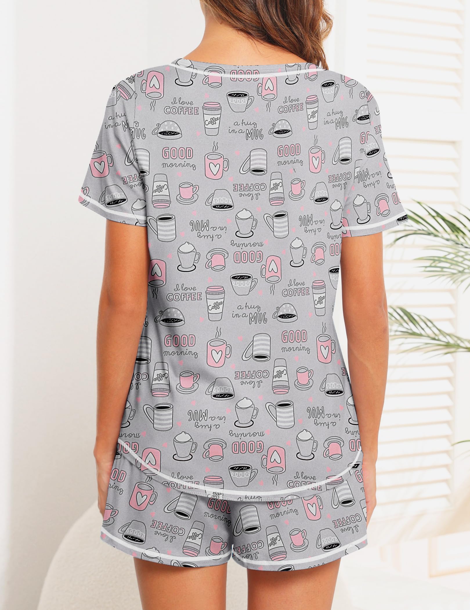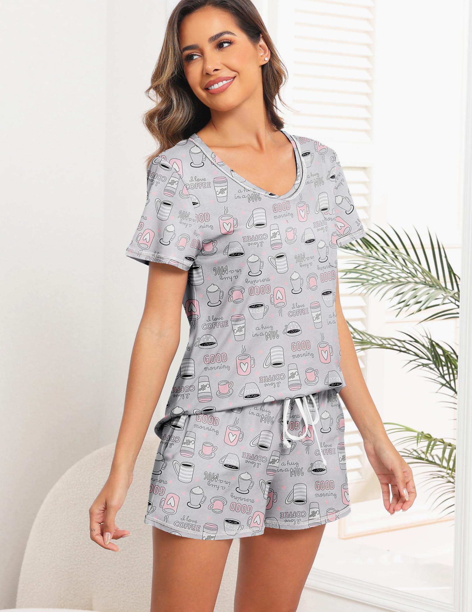 Design: The pajama top features classic chest pocket and V neck, with exquisite hemming workmanship; the pajama shorts features adjustable drawstring and pockets. Loose fit lounge sets, cute and comfy pajamas for women and teens girls