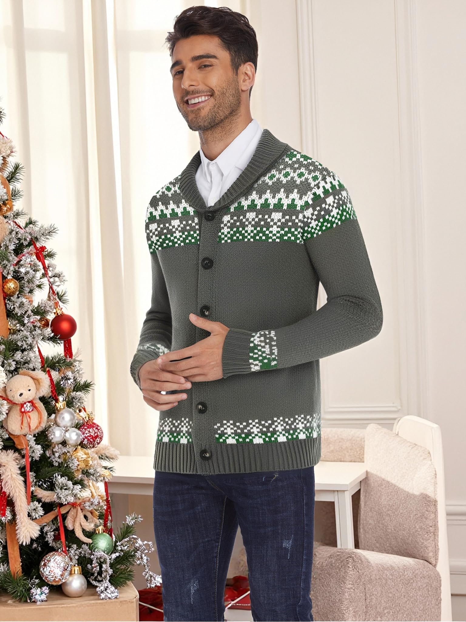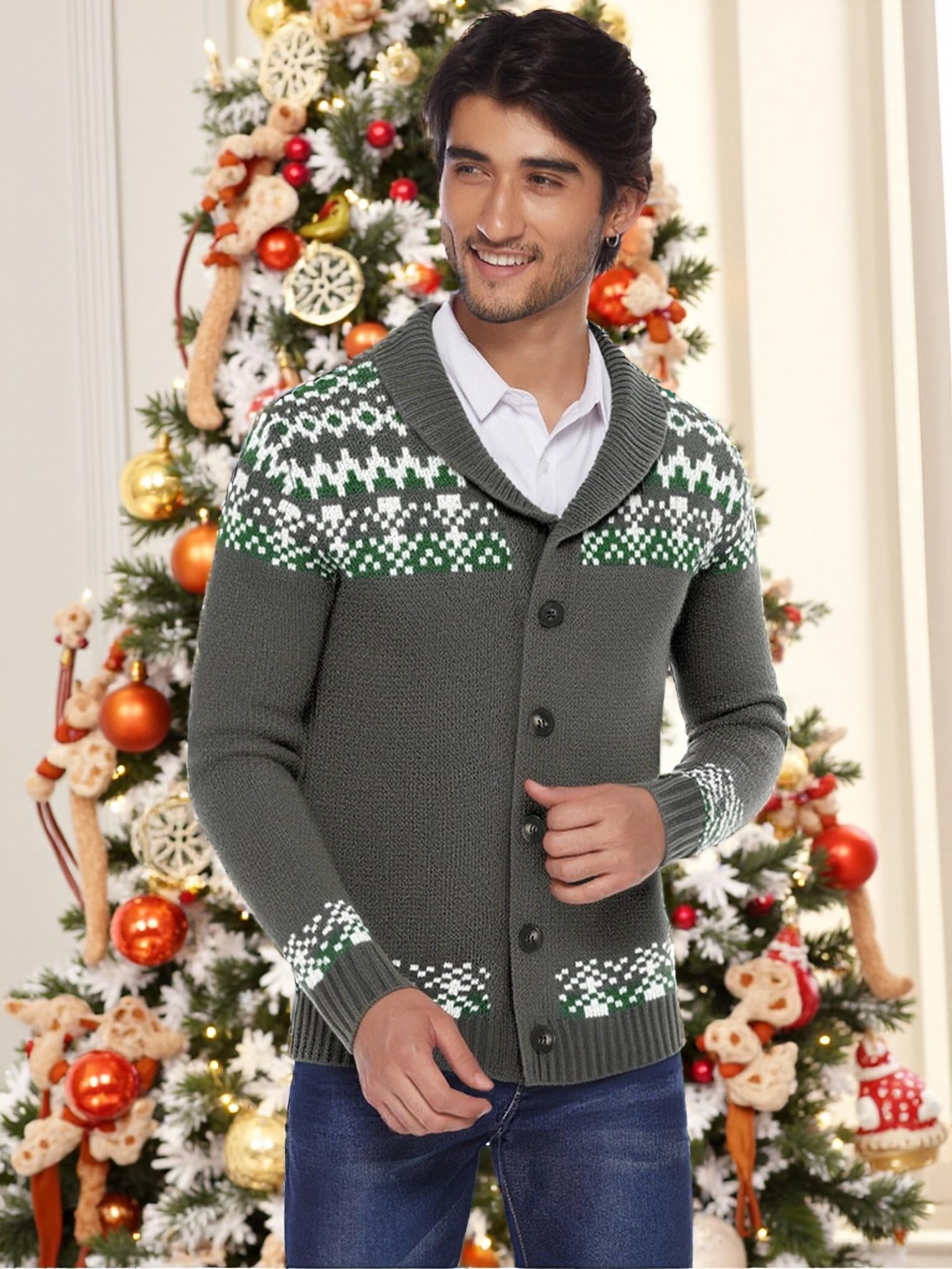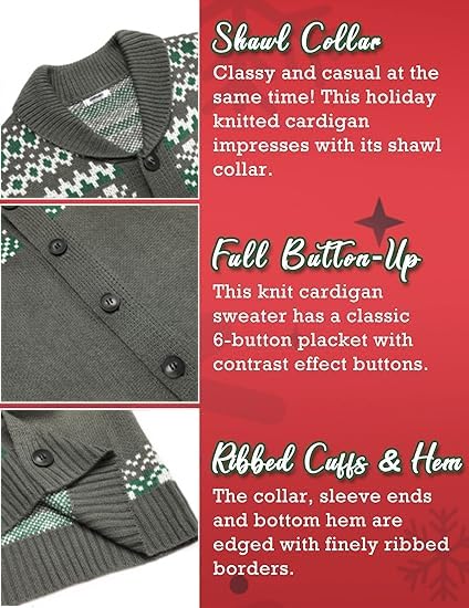 GREAT AS A GIFT - Reindeer and snowflake prints are the most classic Christmas elements - which is why this cardigan is the perfect present for your dad, husband, son, or friend. Give this thoughtful gift for your loved one's next birthday or for Christmas.