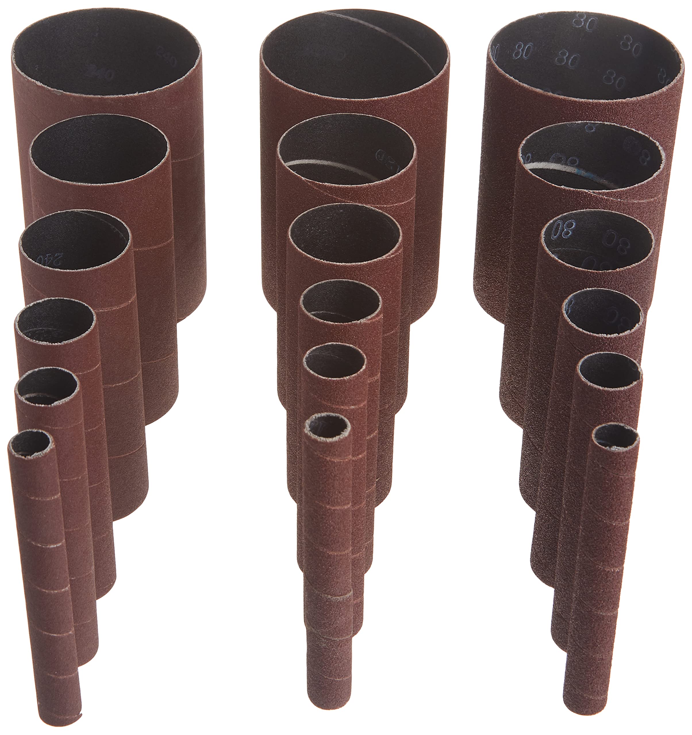 Remember when you had to sand those rounded edges by hand? Give your surfaces the finish they deserve with the WEN Spindle Sanding Sleeves. Designed for use with the WEN 6510 Oscillating Spindle Sander, this set includes six 80-grit sleeves, six 120-grit sleeves and six 240-grit sleeves to meet a variety of applications. Each grit includes a total of six different diameter sleeves: 1/2 inch, 3/4 inch, 1 inch, 1-1/2 inch, 2 inch and 3 inch.