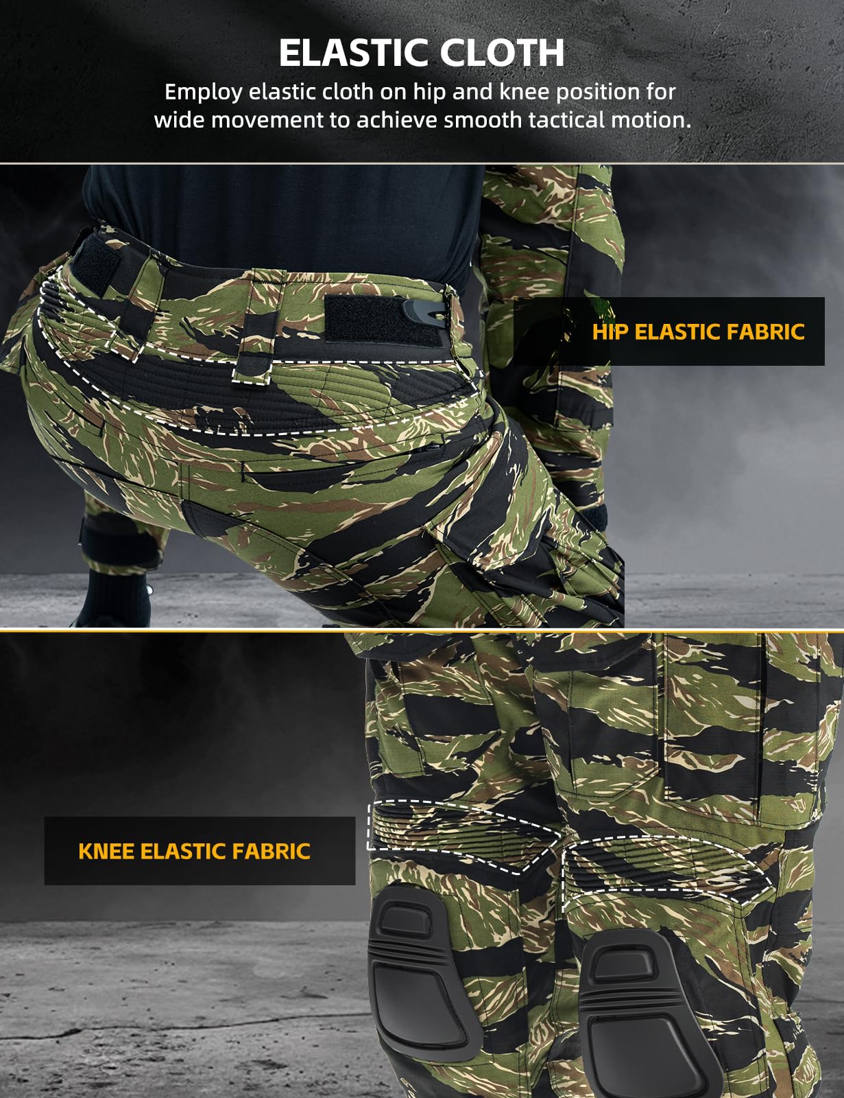 NEW VERSION: Made of new 50% and 50% polyester with a 4-way stretch-woven accents ripstop clothing , Teflon coating, YKK zipper, military level elastic and thread, STRONG and GOOD PERFORMANCE stretchable clothing around knee and hip and crotch, which makes it very comfortable and durable.