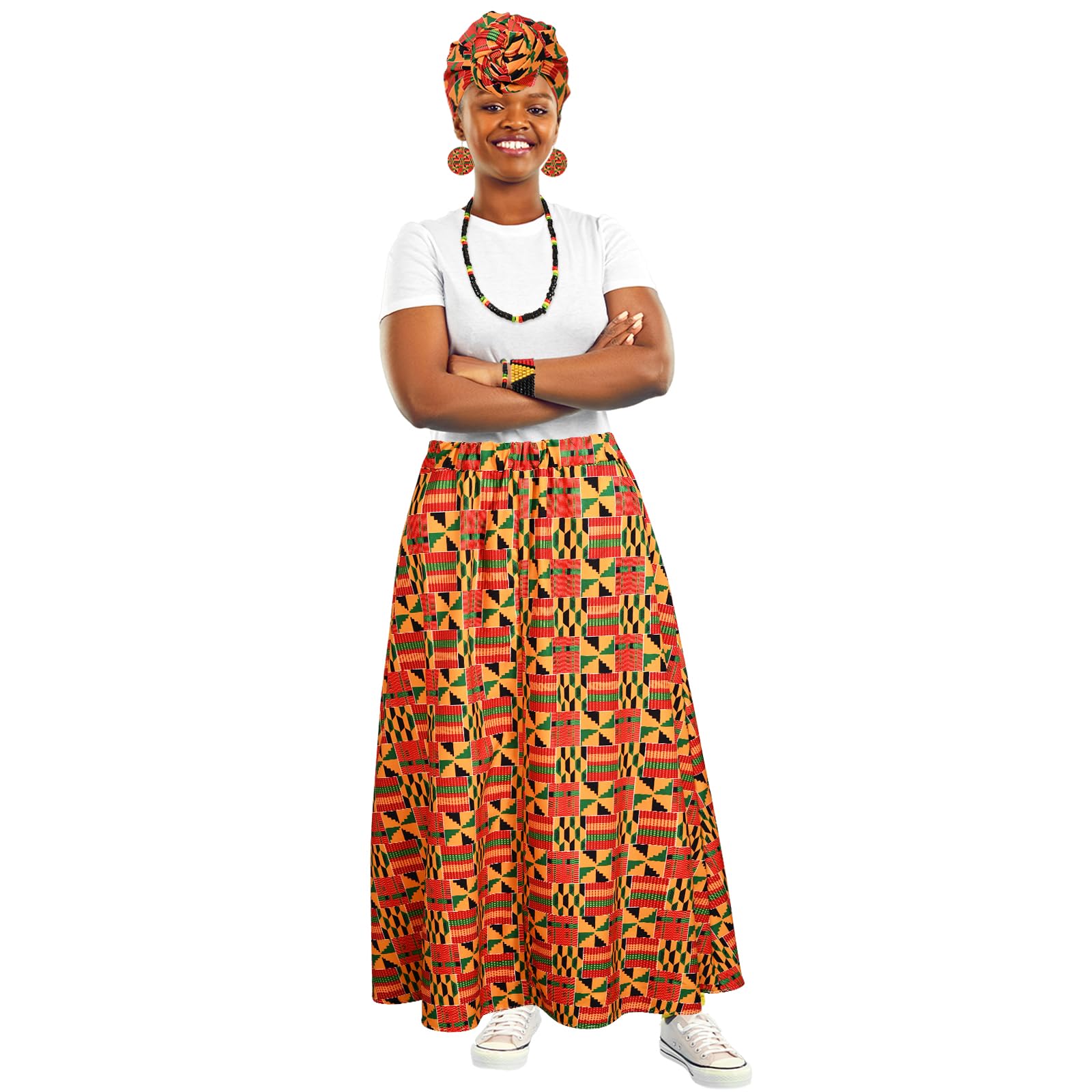 Set Contents:You will receive an African printed Maxi skirt, 1 women African Dashiki head wrap, 1 pair of earrings,1 necklace and 2 bracelets;Perfect outfit to experience the alluring exoticism and sense the clash brought by diverse cultures.