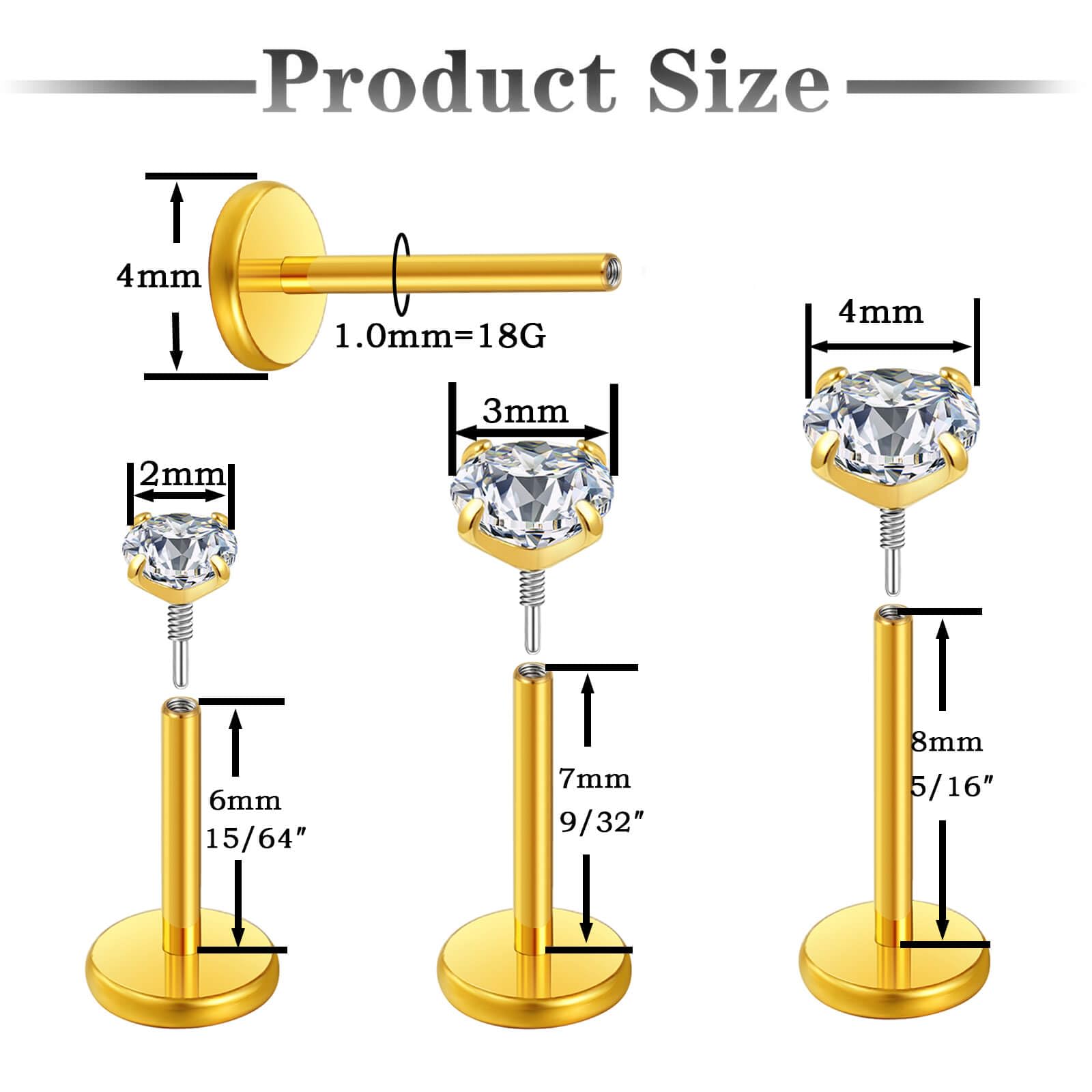 Earrings Stud Size : Studs bar length:6/7/8mm,5A cubic zirconia size:2/3/4mm. Each bar and top CZ can be switched at will, you can adjust different sizes to fit your ear piercings or nose piercings in different positions.