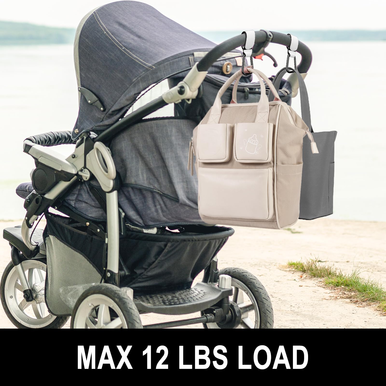 Strong and Sturdy: Sturdy metal hook and premium leather strap can hold up to 12 lbs, easy to meet all daily needs of hanging bag. Free your hands when you are out, perfect for hanging baby diaper bags, shopping baskets, tote bags, bottles, and toys