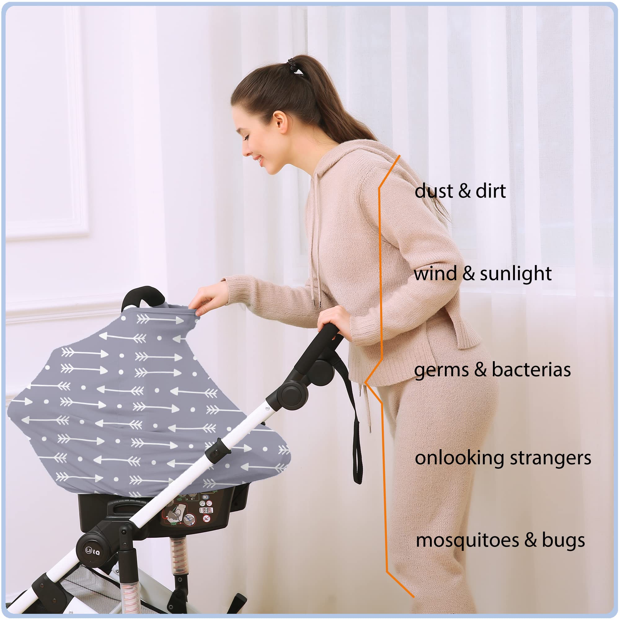 MULTIPURPOSE USE: Enjoy a multitude of purposes for this car seat covers for babies such as practical breastfeeding cover and also be used as a nursing carseat cover, carseat canopy, stroller cover, baby feeding high chair cover and more!