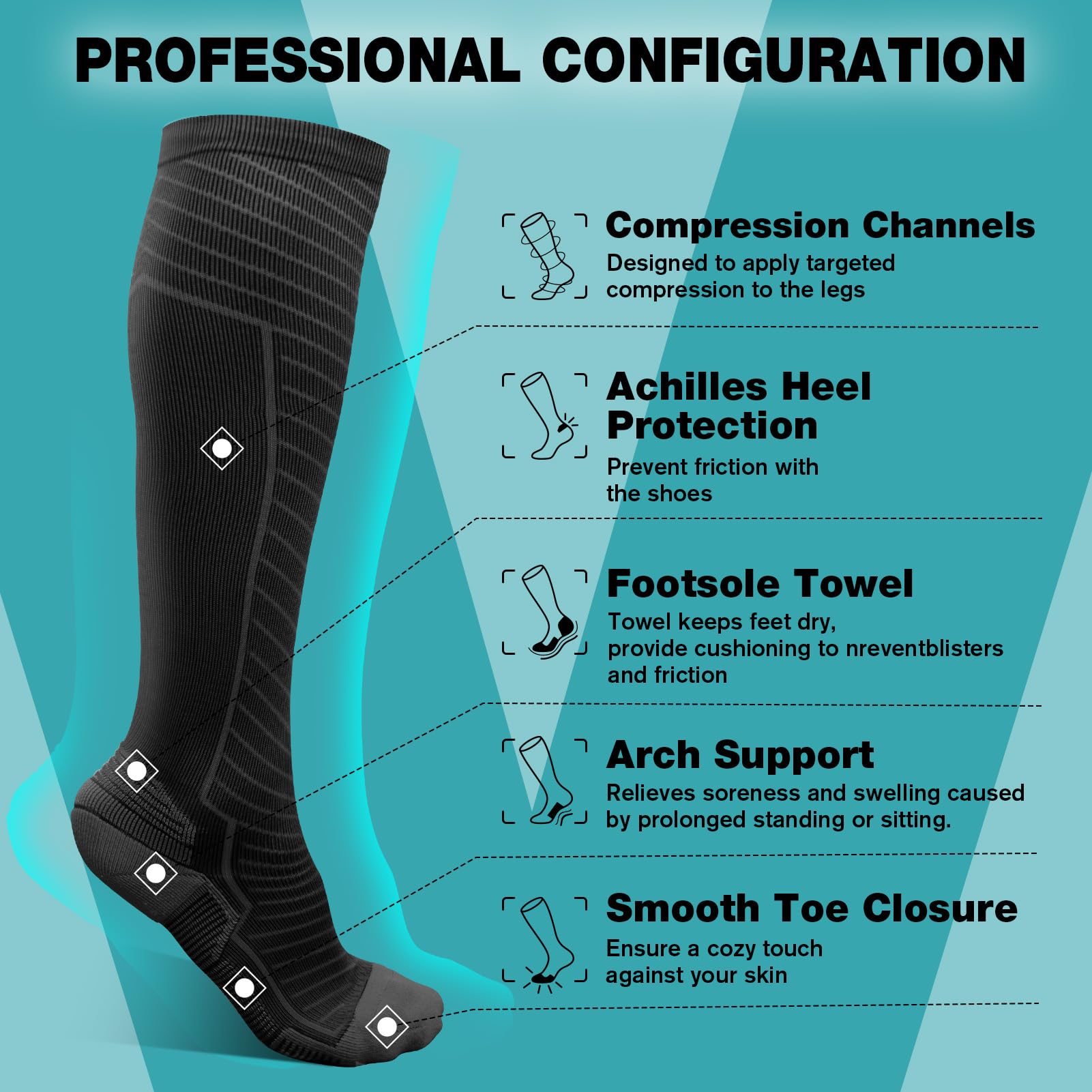 Vibration Damping:Maximize performance with our advanced compression socks. They offer enhanced arch support, soft padding, and a buffering vibration damping system for maximum comfort, protection against overuse injuries, and effective support. With a robust construction, these professional-grade socks are built to elevate your game.