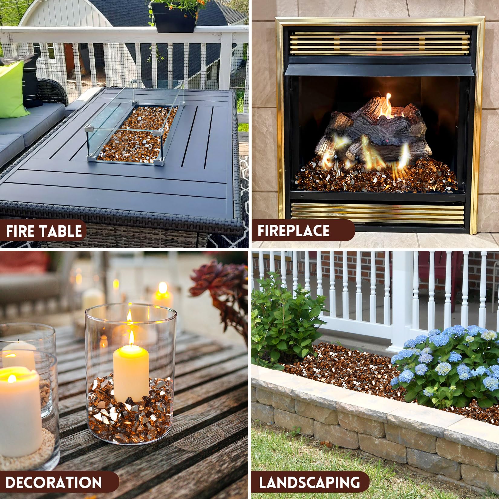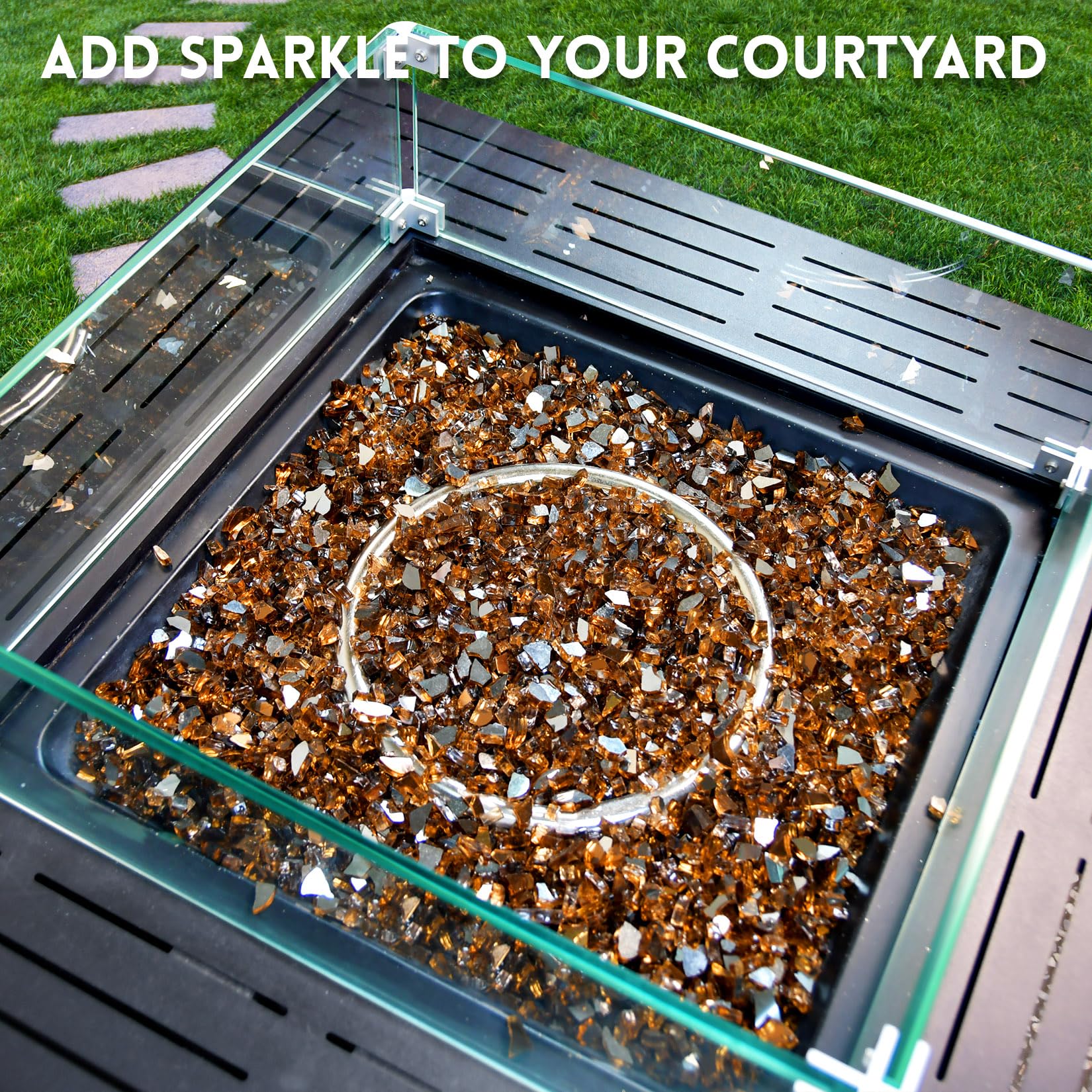 FIRE GLASS : adds a unique veneer of brilliance to any common fire pit. 20-Pound, 1/4 Inch Fire Glass Drops, Amber Reflective