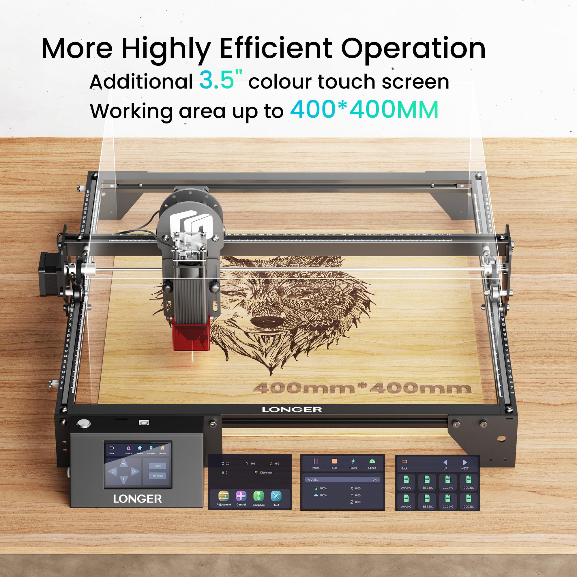 【Meets Various Engraving Needs】With its spacious 400*400mm working area, the Longer Ray5 5W laser engraving and cutting machine accommodates projects of different sizes, ensuring versatility in engraving tasks.