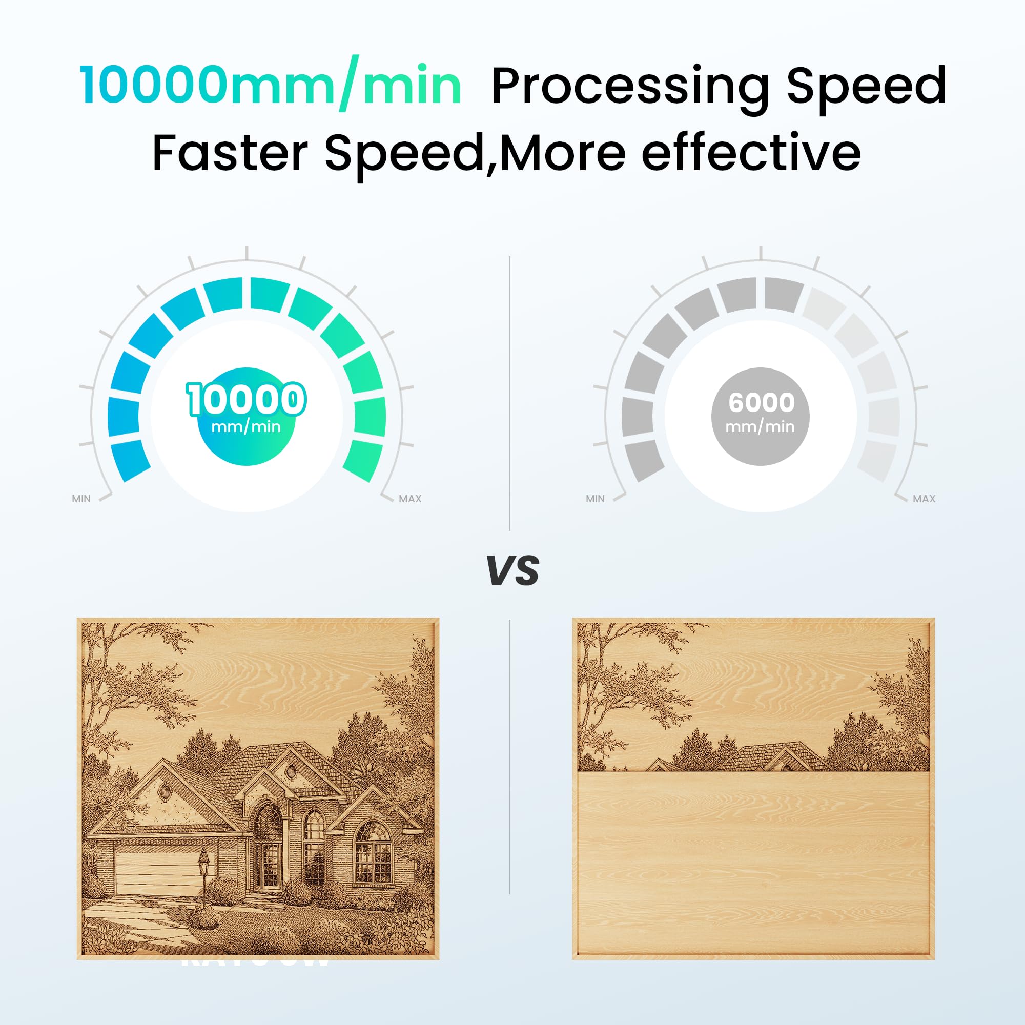 【High-Speed Performance,Laser Class II】Equipped with a cutting-edge 240MHz ESP32 chipset, the Longer Ray5 5000MW laser engraver achieves impressive speeds of up to 10,000mm/min. Its advanced processing power and multi-core architecture ensure superior compatibility and energy efficiency.