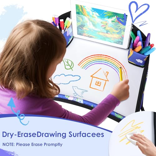 Easy to Clean: Our kids travel tray is crafted from 600D Oxford fabric with a five-layer construction, ensuring a lightweight yet durable design. Car seat table tray surface of the product adopts a wipeable panel, which means that any marks left by kids eating or drawing on it can be easily wiped away without having to worry about getting dirty and difficult to clean.