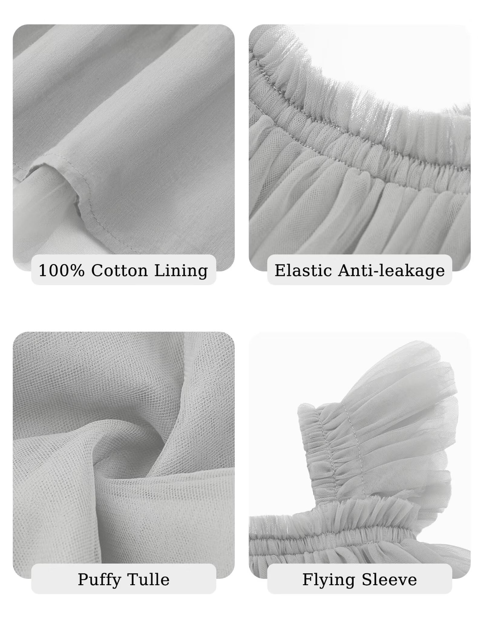 【Soft & Skin‑Friendly Material】Made of high-quality tulle with a soft lining, this dress is gentle on baby’s delicate skin. It is not scratchy, stiff, or see-through, ensuring comfort for all-day wear and photo sessions
