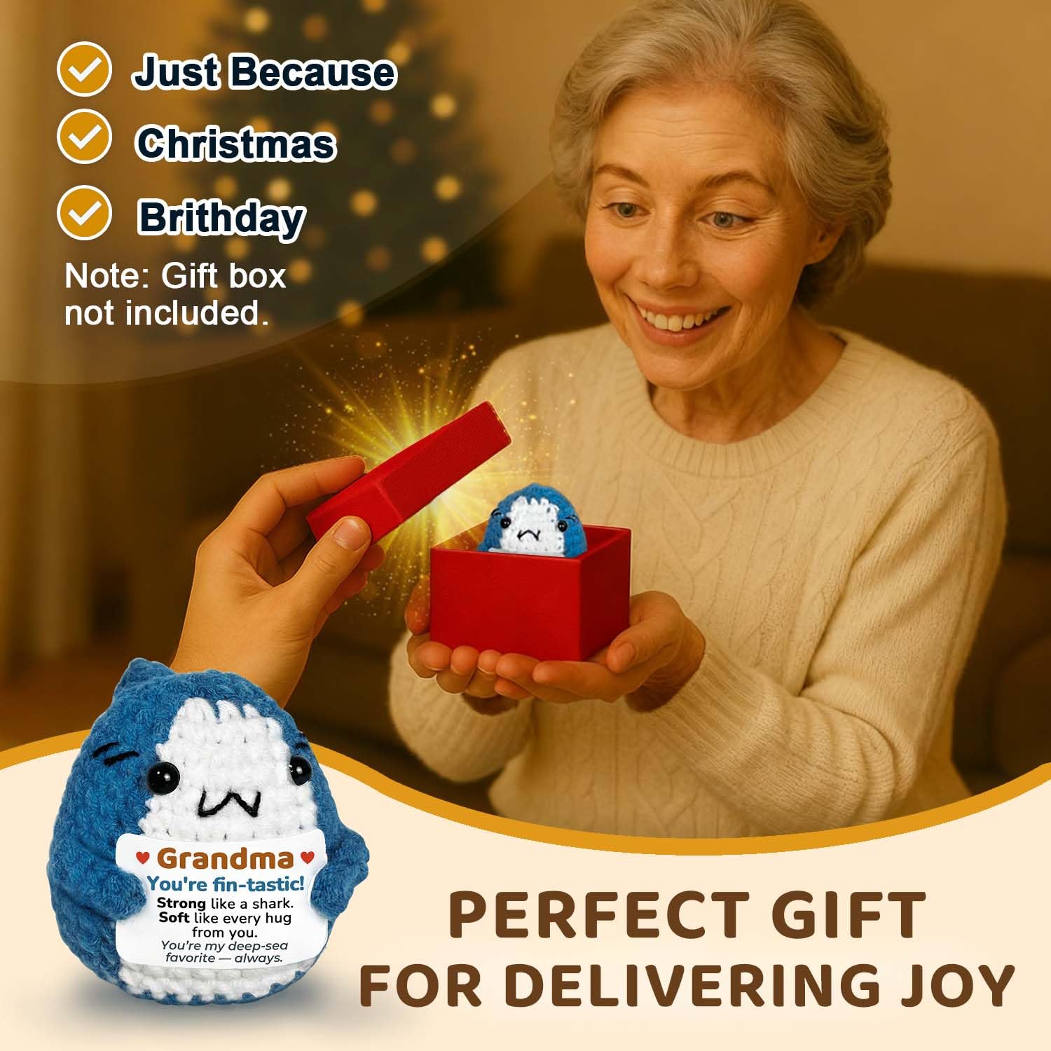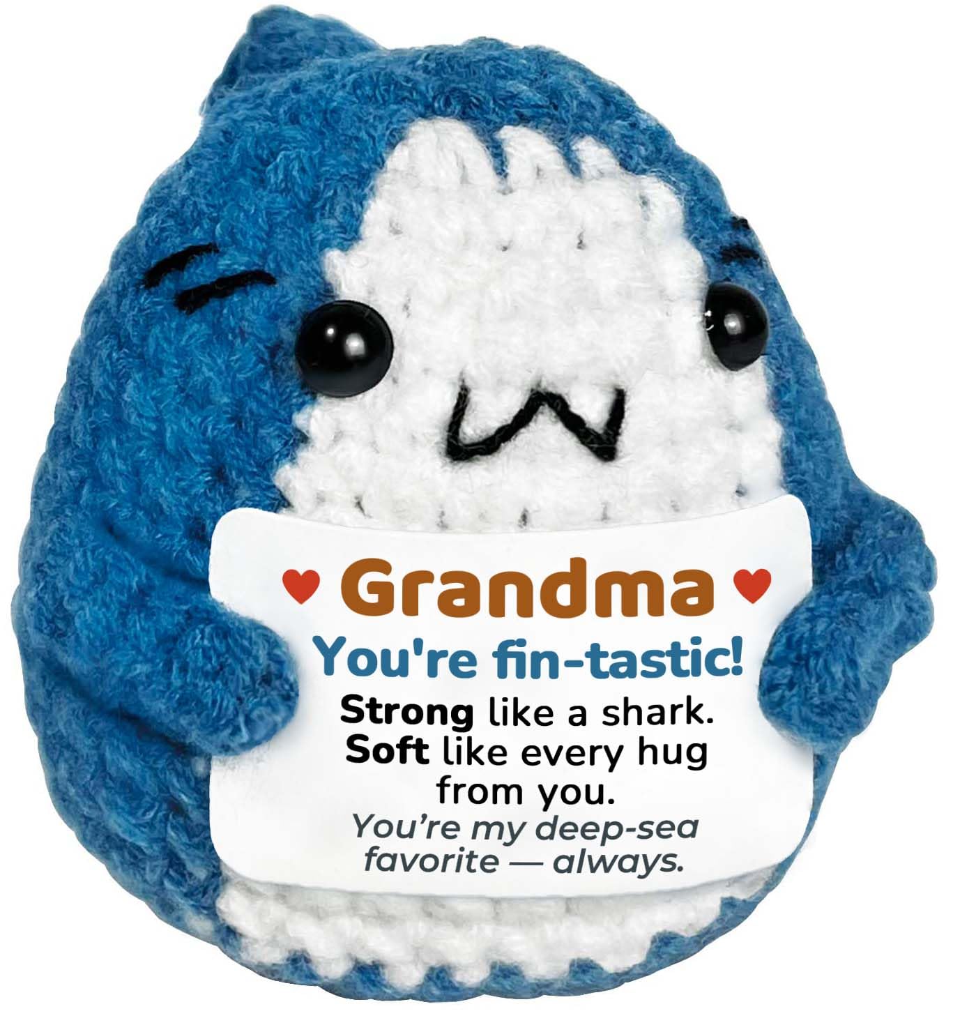 Cute Design with a Fun Message: Adorably crocheted into a tiny shark with a sweet and funny card that brings a smile every time. Its playful message adds warmth and humor — a charming way to make Grandma’s day brighter