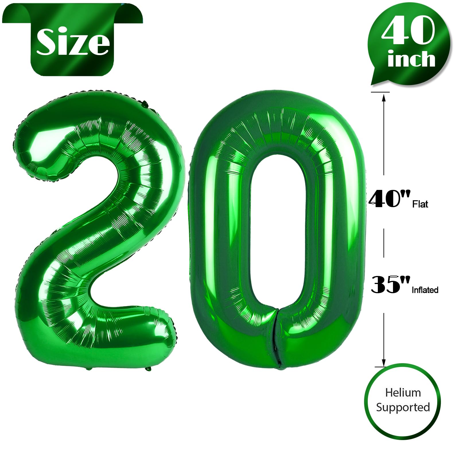 【Helium or Natural Air Both Work Well for this Balloon】This 20 balloon is the ultimate party accessory for 20 years old birthday decorations for girl and boy! You can inflate the 20 balloon number with helium for a floating effect or blow it up with natural air to hang it up as a decoration. Either way, this sturdy green number balloon won't disappoint. It's perfect for long-lasting celebrations that will leave a lasting impression on your guests.