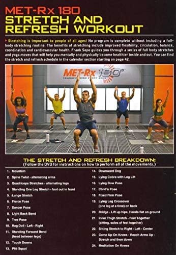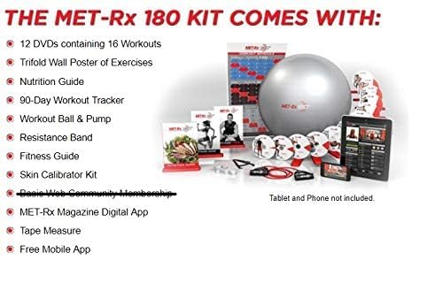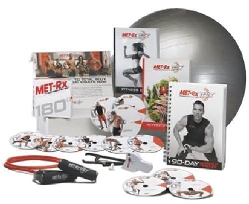 MET-Rx 180 is more than just a DVD workout program. It’s a comprehensive workout designed to give you 180-degree full body transformation. MET-Rx describes their program as being based on a progressive resistance training program using weight training and cardio exercises. The program has 3 phases: 1. Conditioning Phase, 2. Shaping Phase and 3. Definition Phase; each phase designed to build off the previous phase and increasing in resistance and difficulty.