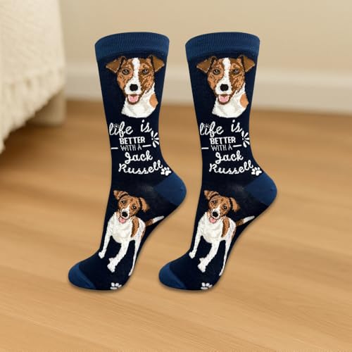 Description Introducing our collection of adorable and vibrant pet lover socks designed exclusively for pet lovers! These funny socks are the epitome of cuteness and novelty, guaranteed to bring a smile to your face. Big image of dog head woven on both sides on the socks and full body image woven on the bottom of the socks with a cute saying that says life is better with Dog. These socks are made in South Korea, These funny socks are made from 200 needle count machines which give life-like detail of your favorite pet. Step up your sock game with our adorable and hilarious Dog Socks, designed especially for pet lovers! These novelty socks are the perfect addition to your collection, featuring cute and silly designs that are bound to make you smile. Made with high-quality materials, these fun socks offer both comfort and style. They add a playful and fashionable touch to your everyday outfits, whether you're dressing up or keeping it casual. Whether you're a dog mom, a dog dad, or simply a dog lover, these socks are a must-have. With their delightful designs and comfortable fit, these socks are a fashionable treat for pet lovers and make great novelty gifts and dog mom gifts.