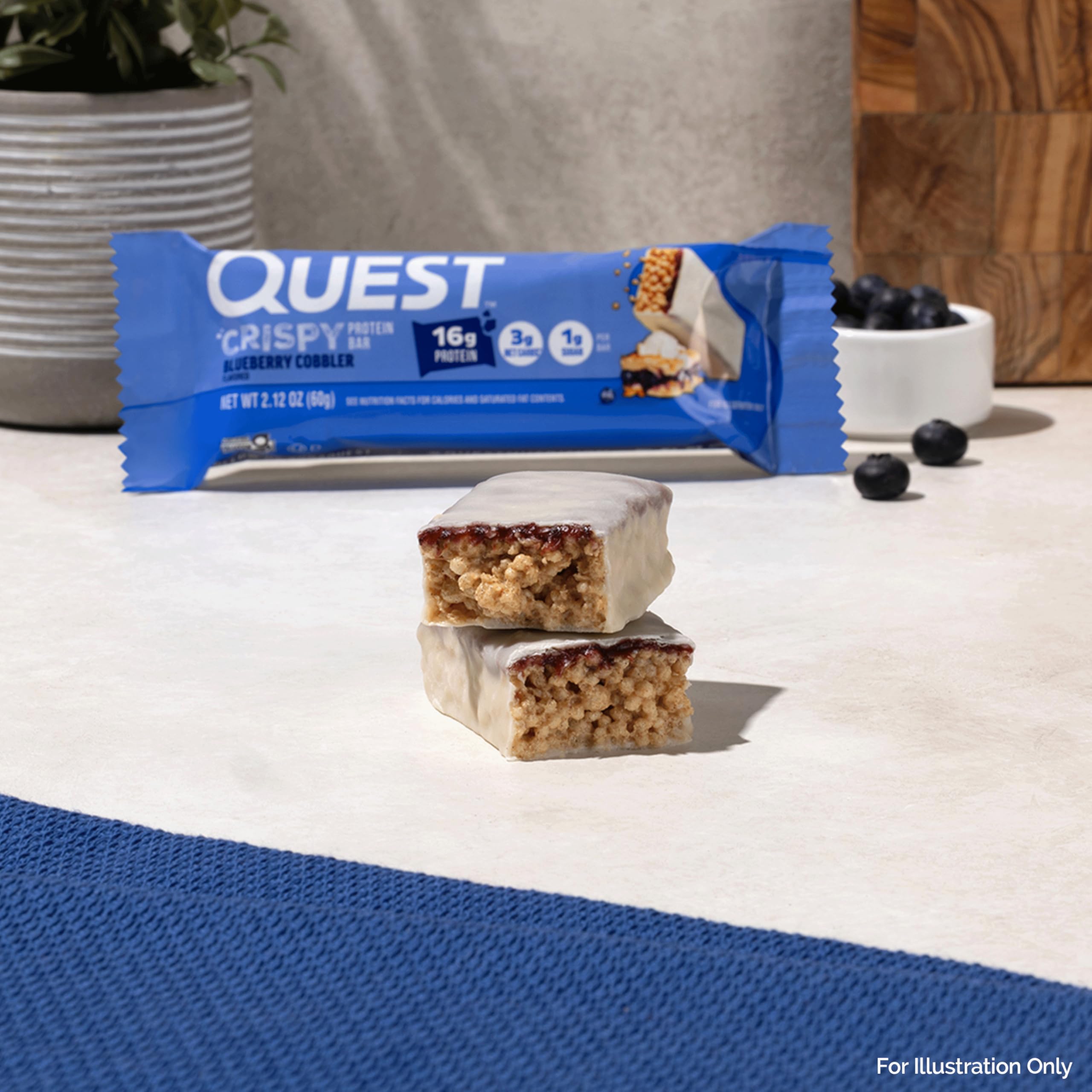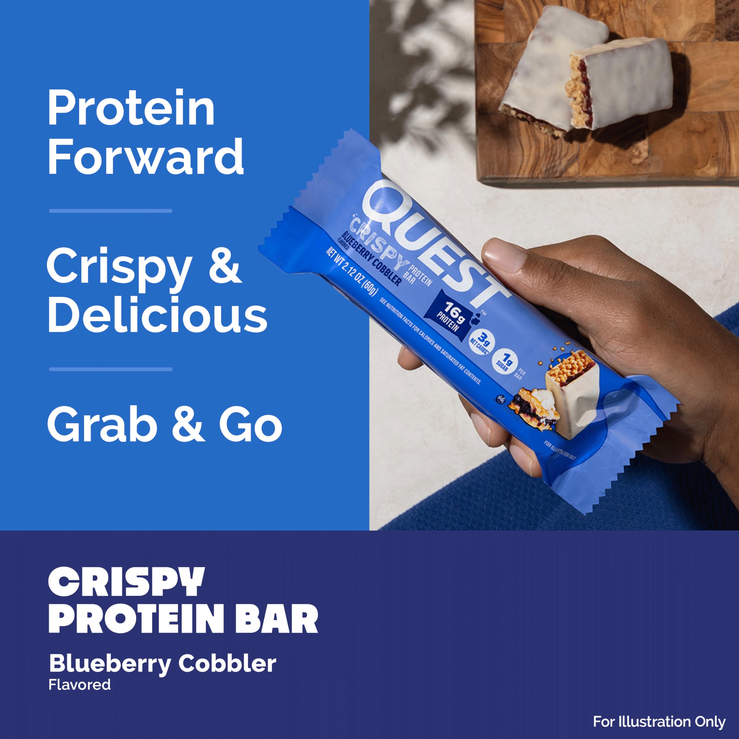 AT HOME OR ON-THE-GO. Quest Blueberry Cobbler Flavored Crispy Protein Bars with 16g of grab & go protein* are great for your morning commute, as a tasty treat at your desk, or a delicious way to refuel after a workout