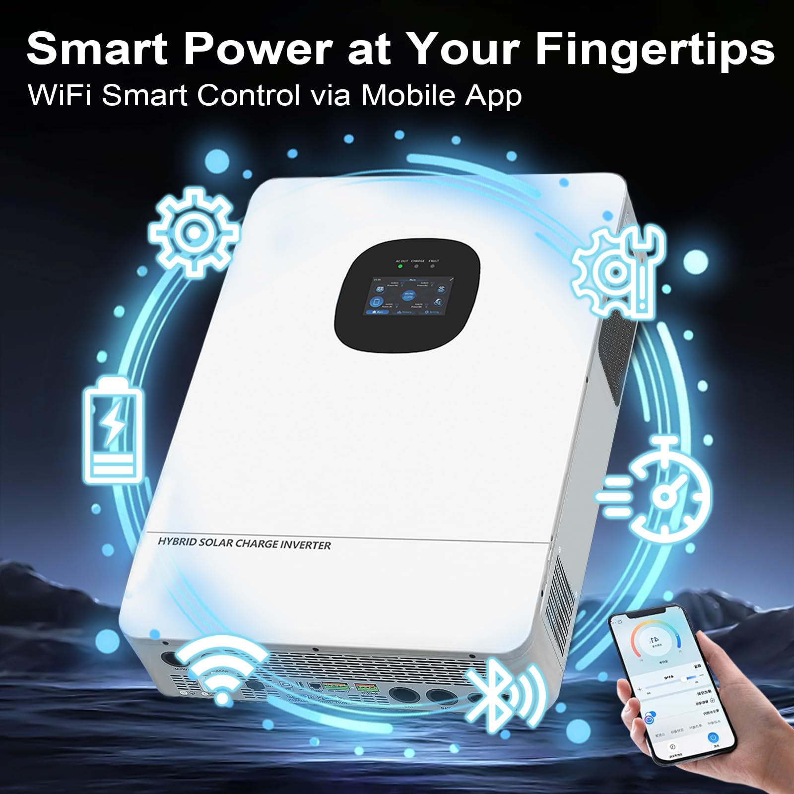 Intelligent WiFi Control & Seamless UPS: Built-in WiFi enables remote monitoring, parameter adjustment and fault alerts via mobile APP; 0ms seamless switch during power outage, ensures uninterrupted power for critical devices like refrigerators and medical equipment.