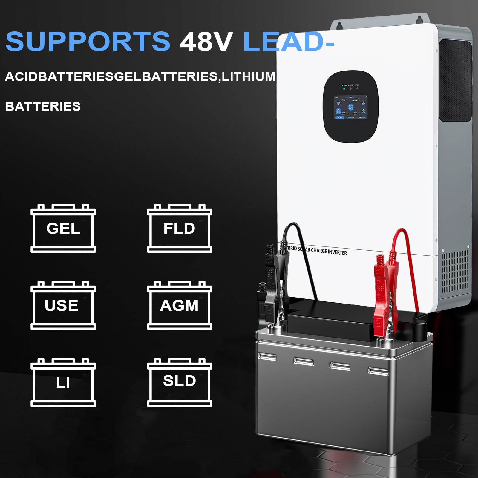 Universal Battery Compatibility: Fully compatible with lead-acid and lithium batteries, free to choose based on your budget and usage needs; dual MPPT design boosts charging efficiency, maximizing solar energy utilization and reducing electricity costs.