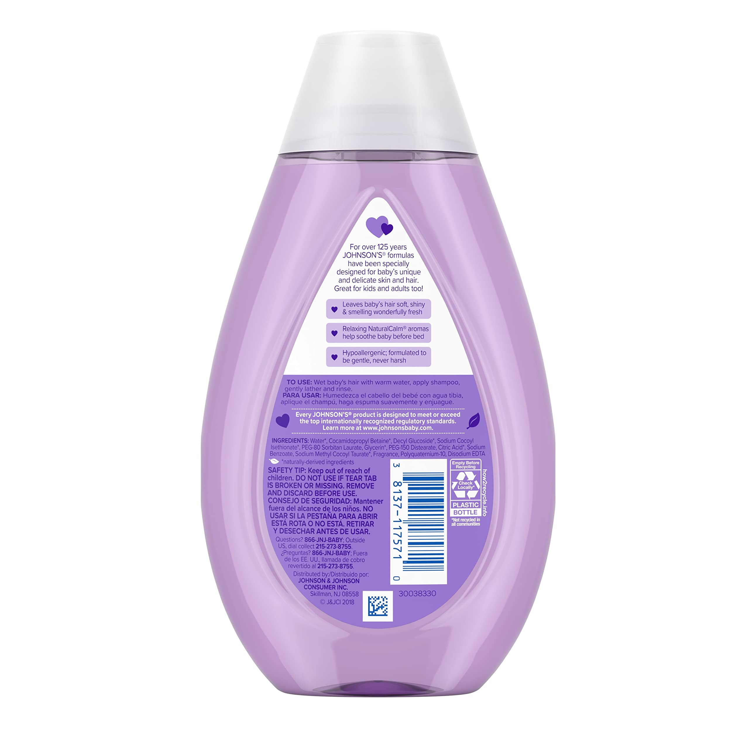 Johnson's Calming Baby Shampoo provides a gentle clean and a soothing scent to help prepare your little one for bedtime. Made for baby's delicate hair but great for adults too, this baby calming shampoo relaxes the senses and gently cleanses your baby's delicate hair, leaving it soft, shiny, and smelling wonderfully fresh. The baby hair shampoo is enhanced with relaxing NaturalCalm aromas to help soothe your baby before bed. Formulated to be gentle, never harsh, the No More Tears formula is gentle on eyes. This tear-free baby shampoo is hypoallergenic; pediatrician-tested; and free of parabens, phthalates, sulfates, and dyes. To use, wet baby's hair with warm water, apply tear-free shampoo, gently lather, and rinse. This baby bath shampoo is perfect for bath time. For over 125 years, Johnson's formulas have been specially designed for baby's unique and delicate skin and hair.