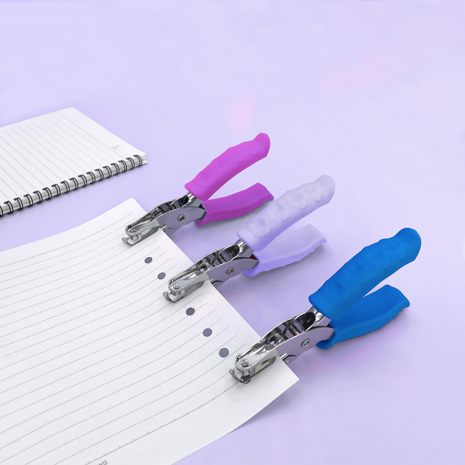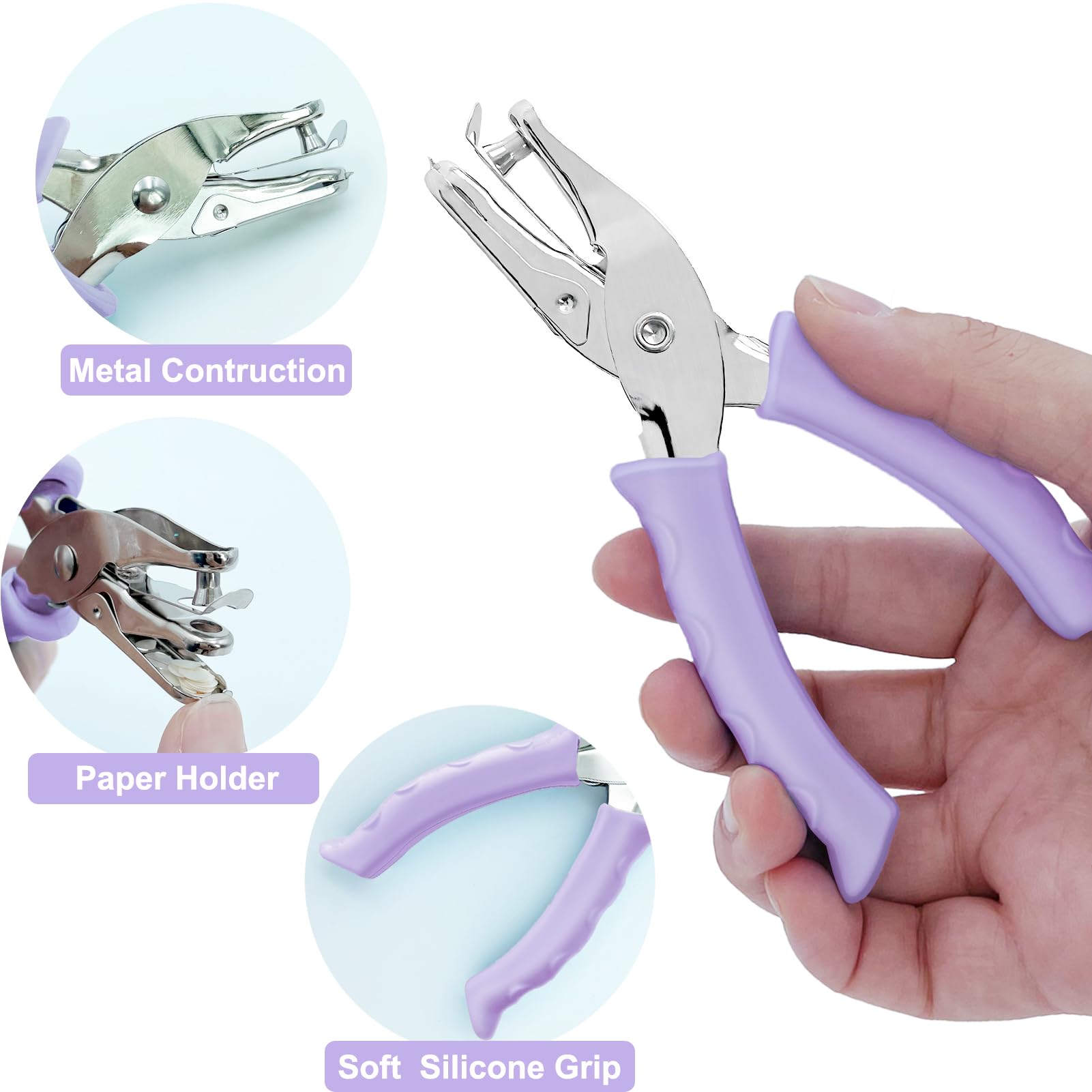 Soft Silicone Grip: Unlike pure metal hole punch, our hole puncher for kids has 2 soft silicone grip handles which makes it more comfortable to hold and use the tiny hole punch. And you hands will not have a sore even if you use this hole punch single for a long time