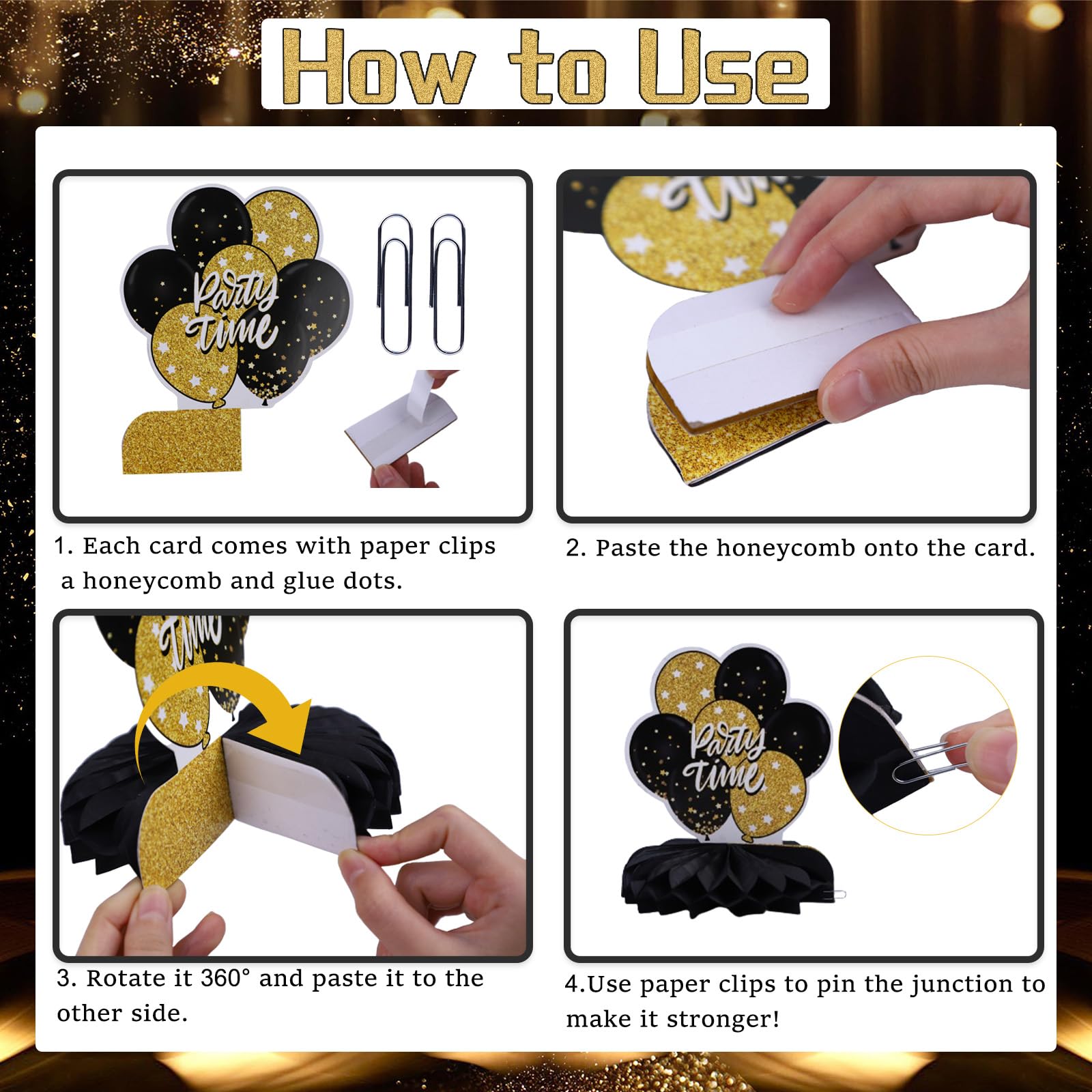 What You'll Get: A set of 9PCS shiny honeycomb centerpieces, each patterned with the best elements. Five golden and four black honeycomb bases bring you a different visual experience.