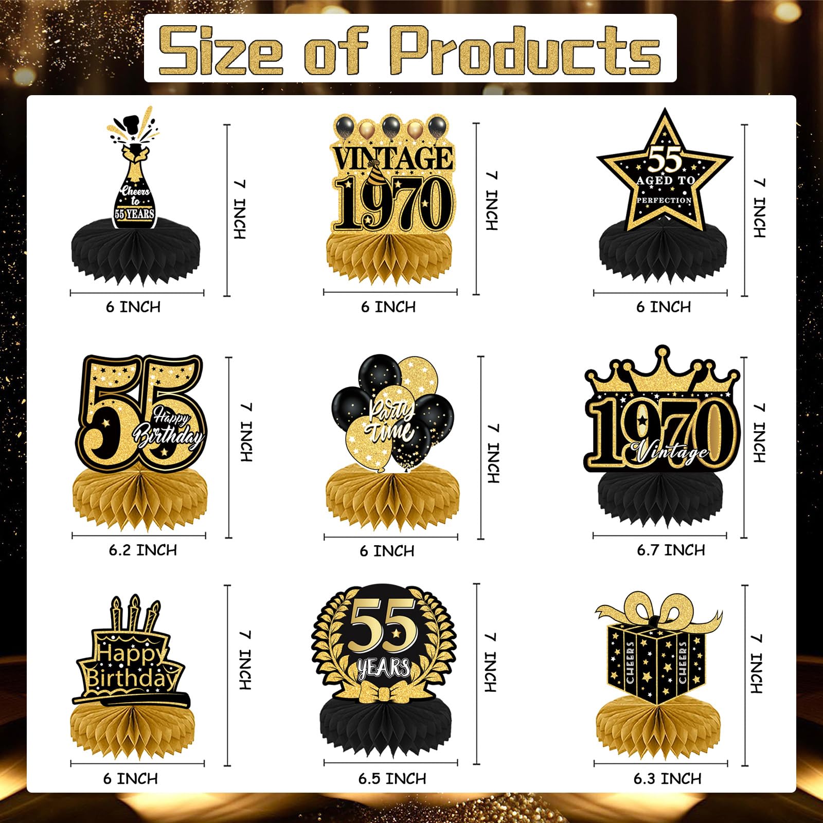Uses: A set of decorations for multiple purposes. It can be used for a 55th birthday party, a 55th anniversary, a great birthday gift for friends, and the best table decoration for yourself on the 55th.