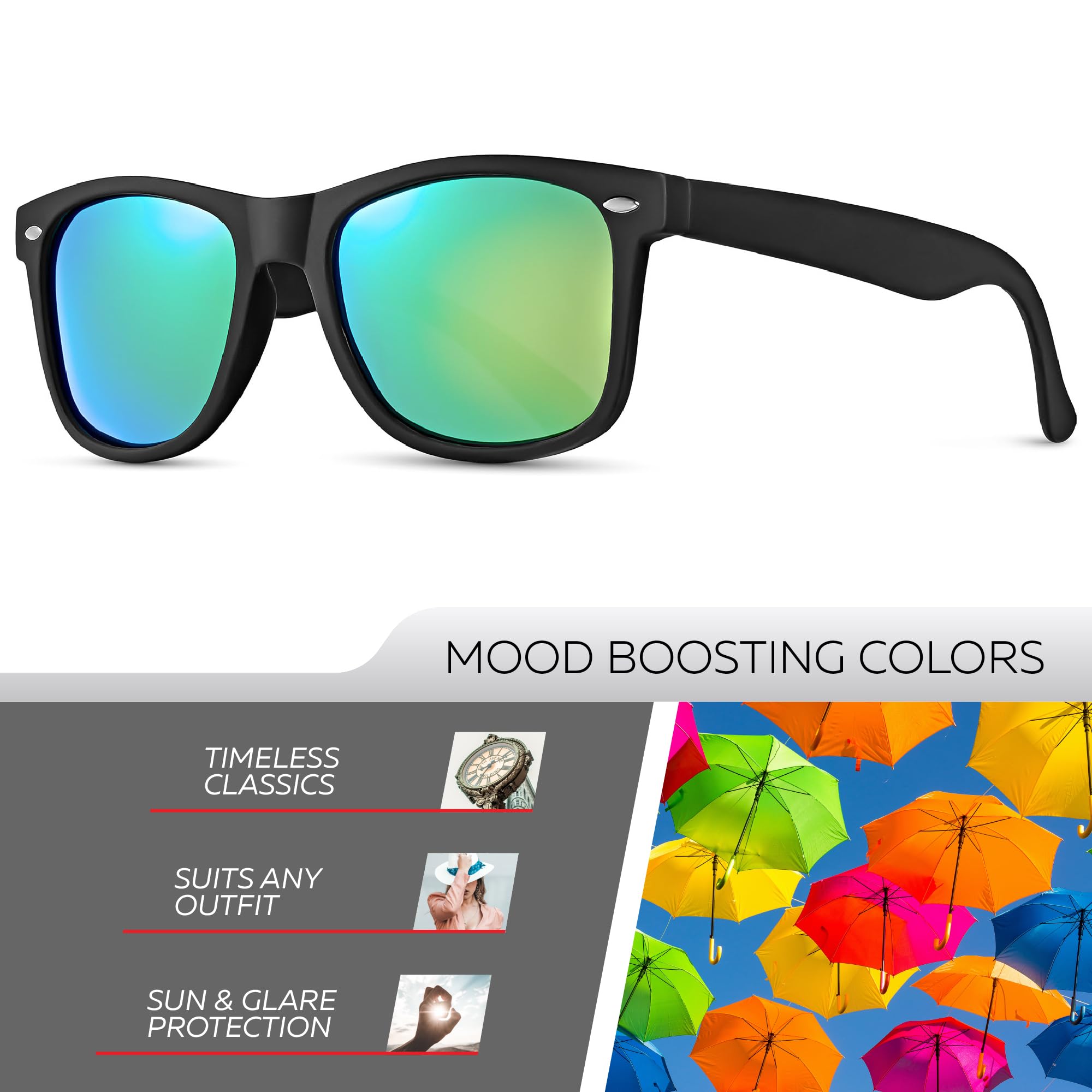 🕶️ DESIGNED TO PLEASE ANY TASTE, ANY SHAPE AND MATCH ANY OUTFIT: The Retro Rewind Sunglasses are a mixture of vintage style, contemporary fashion, and modern technology. The sunglasses will put an exclamation point on your casual, business casual or athletic outfit and help you look sharp, crisp, and sophisticated! Available in 50+ color combinations.