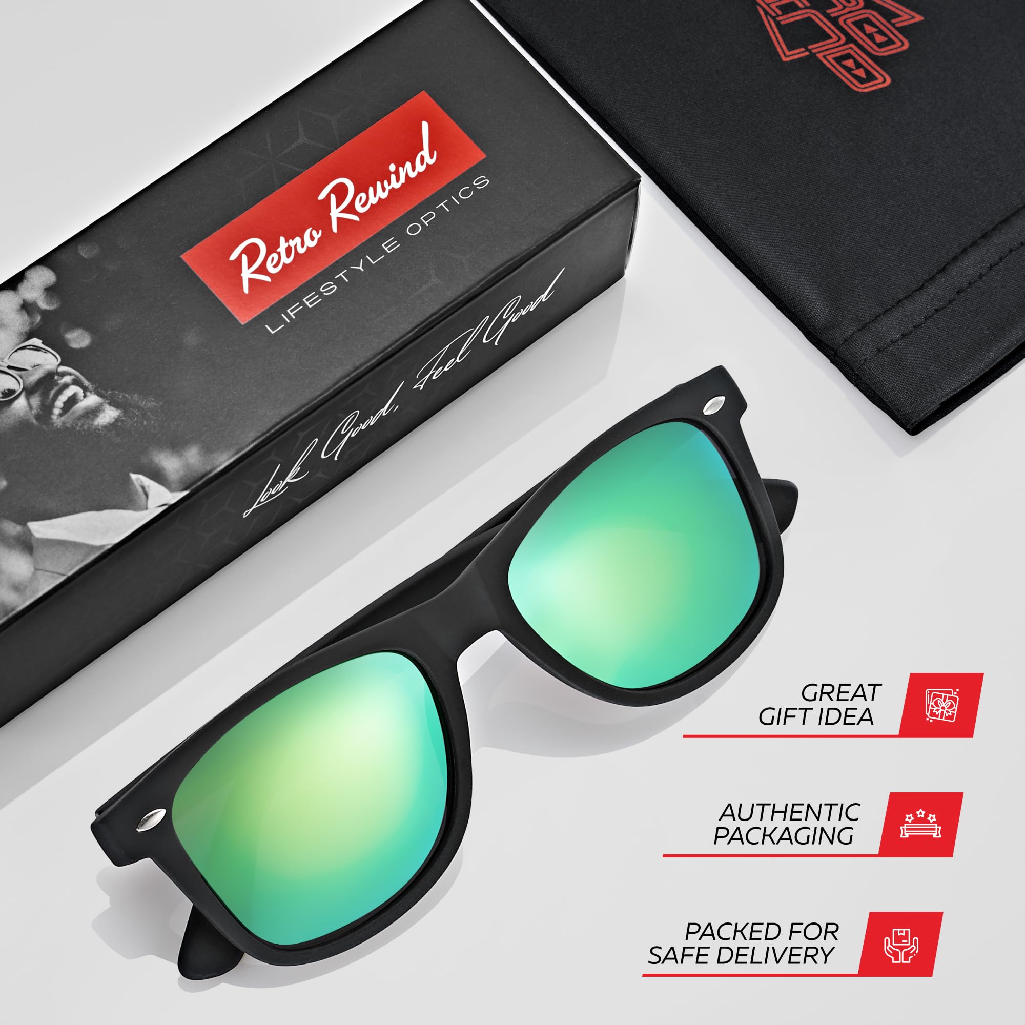🕶️ SURPRISE YOUR LOVED ONES WITH A PAIR OF RETRO GLASSES: Every pair of Retro Rewind classic polarized sunglasses comes with an authentic Retro Rewind microfiber pouch and a Classy Gift Box. Spoil yourself, your wife or girlfriend, husband or boyfriend, family or friends with a pair of high-quality vintage sunglasses, which will not cost a small fortune.