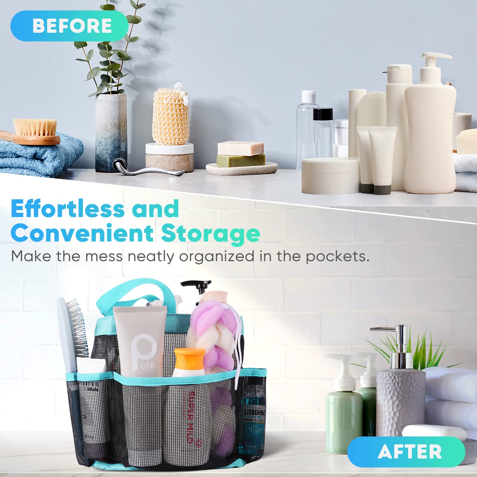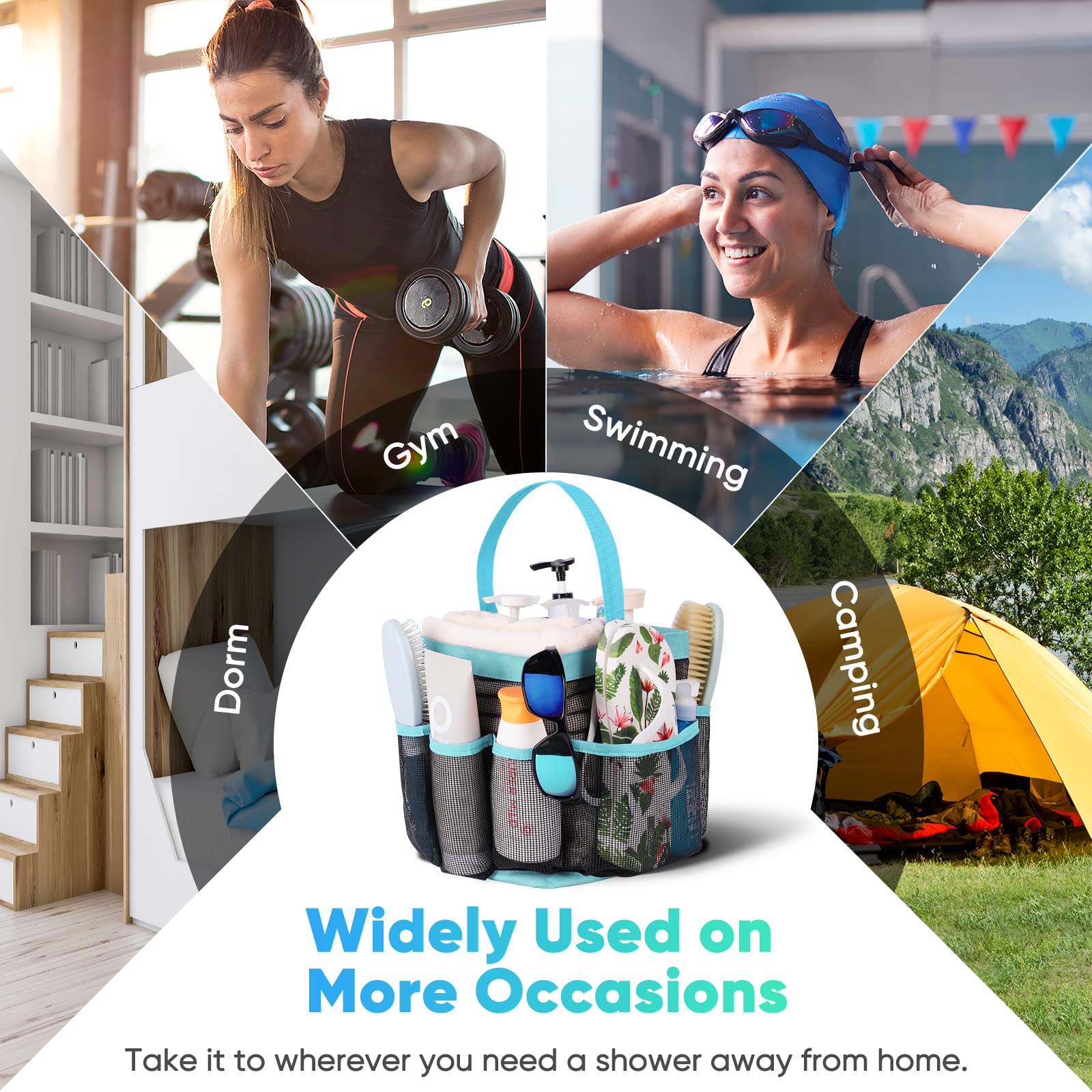 Quick Dry, Easy Clean:Quickly get access to the needed item stored in the portable shower caddy. Breathable mesh fabric is the perfect choice for shower bags, which drains water away easily and dries up quickly. Wash and dry the shower bag at any dry and ventilated place to prolong the lifespan.