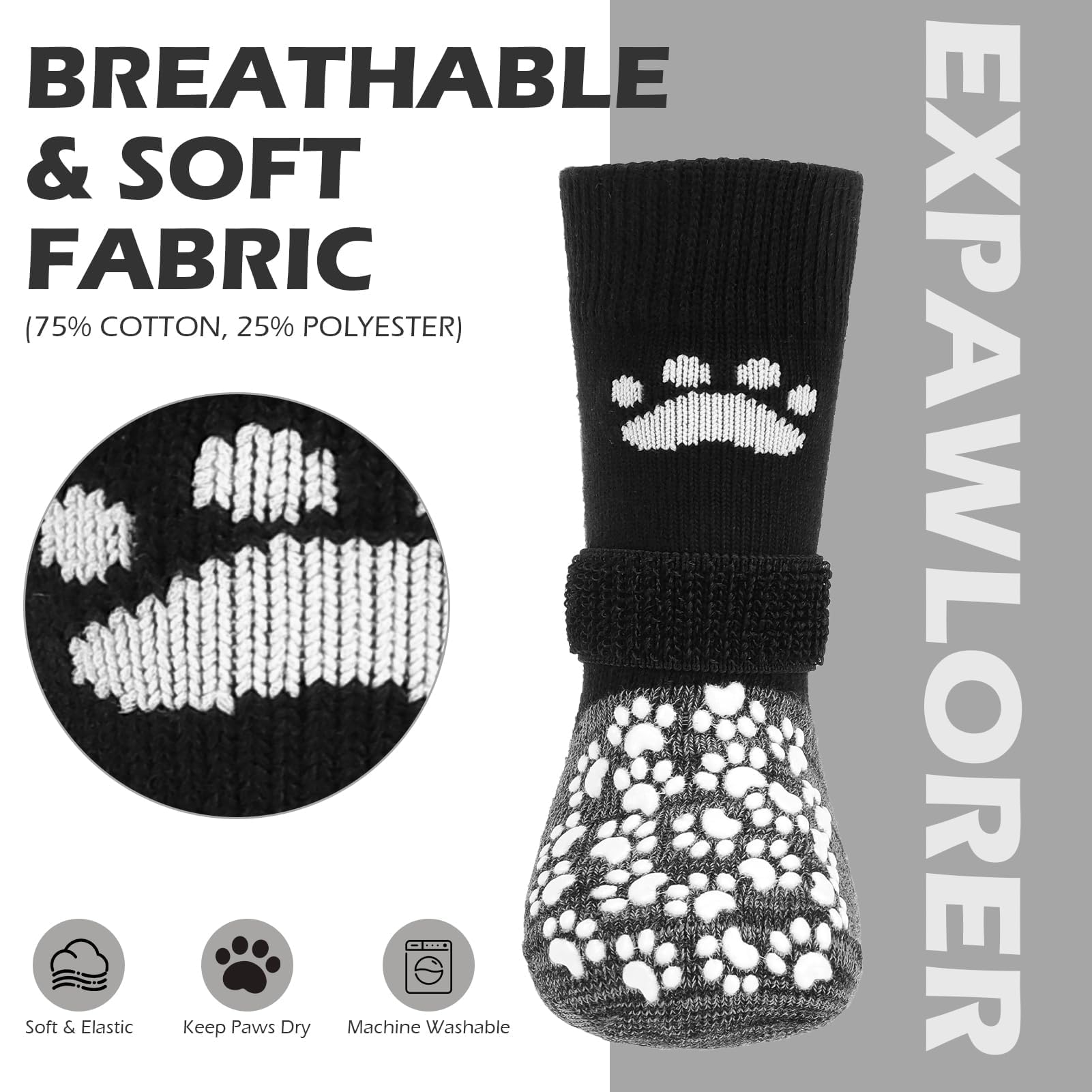 [Anti-Fall Off] Updated with wider and longer elastic sticky straps, there is more room for adjustment depending on your dog's feet, to prevent socks from falling off, greatly increase wearing comfort, and keep your socks safe from scratches in the wash, we’ve designed a removable sticky straps so you can easily take it off before washing.