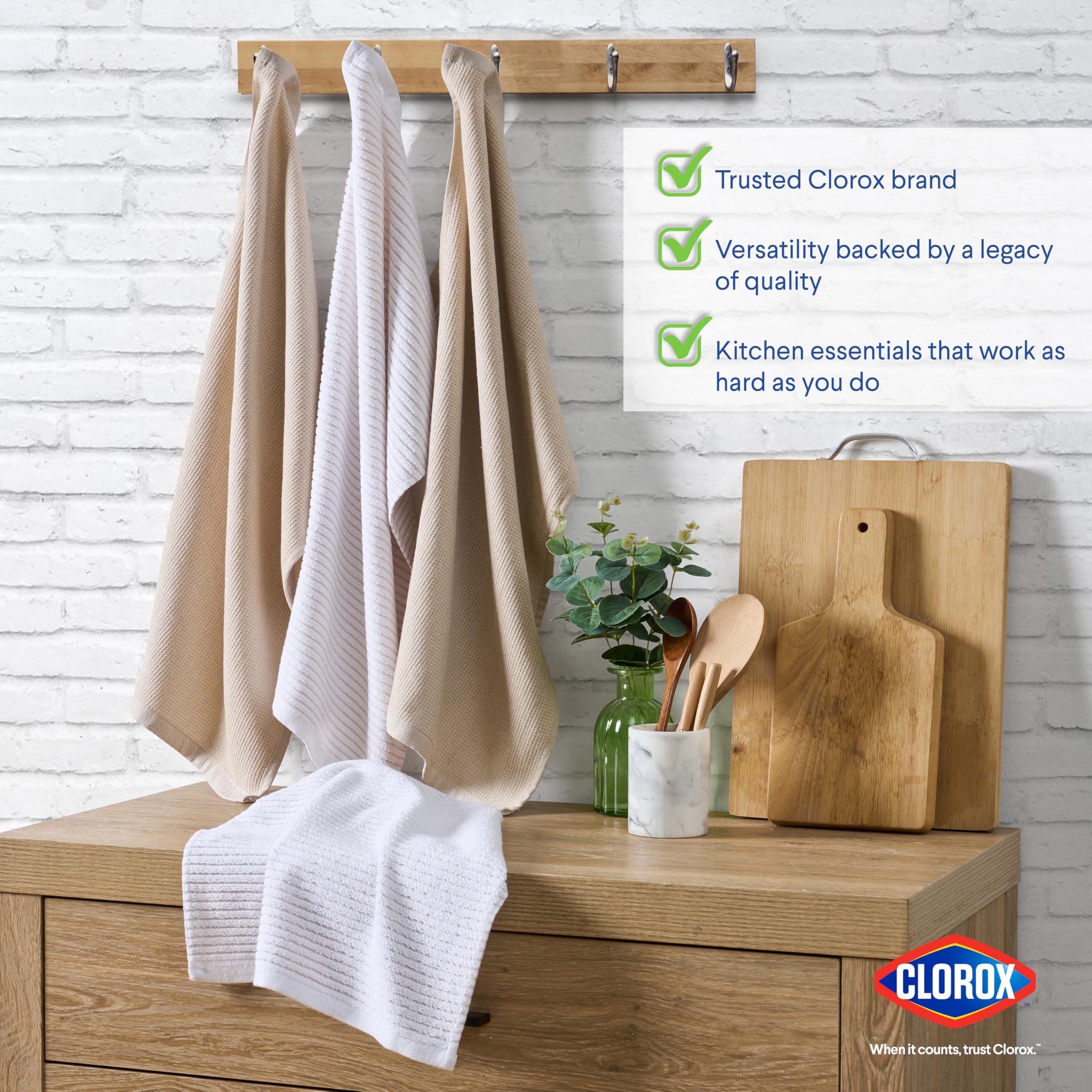 HANGING TAG AND J HOOK: Bundled Kitchen towels come with a perfect hanging tag to place anywehre needed for immediate use.