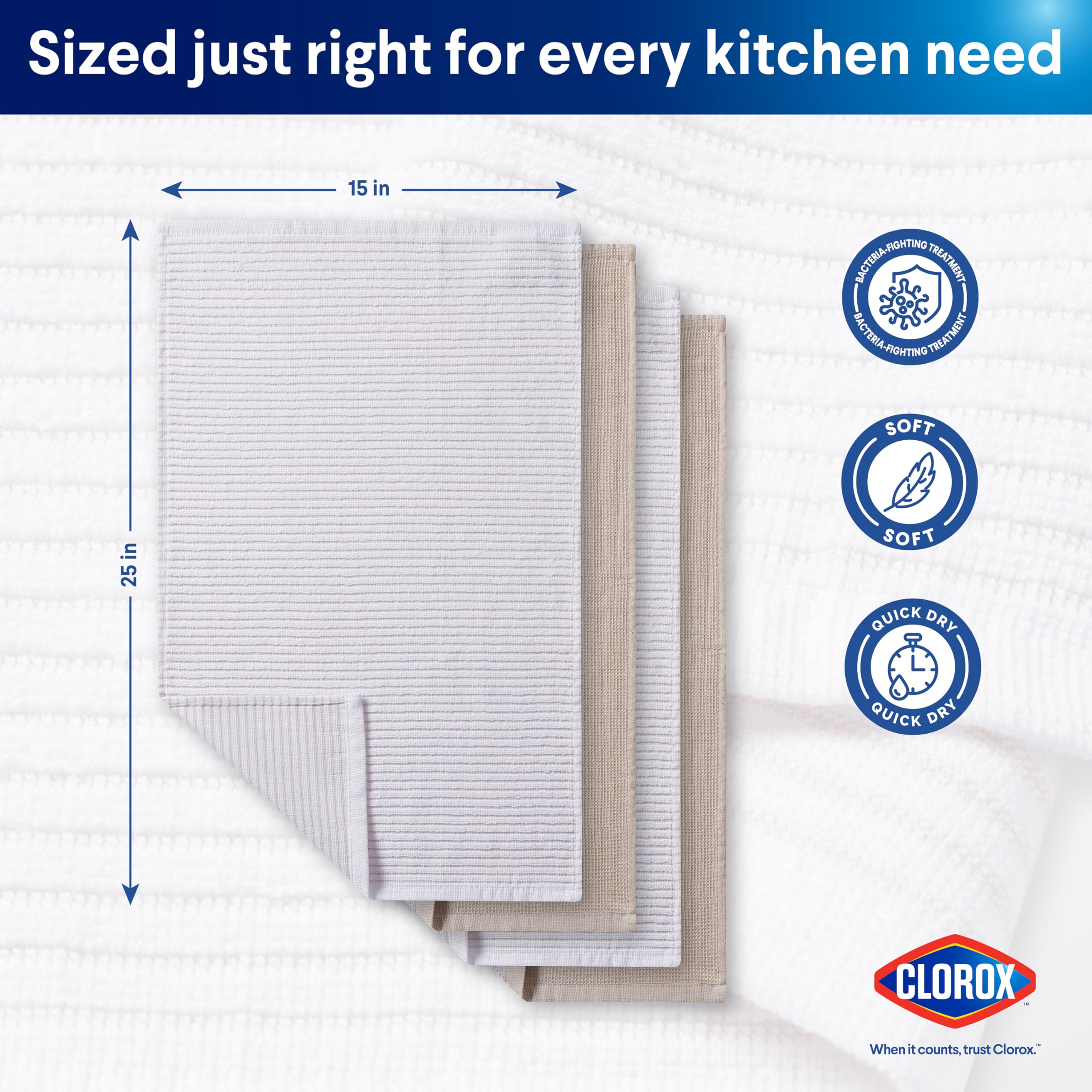 INCLUDES 4-PACK: Contains multiple towels. These sets come in 4 different colors to match your kitchen. Great for drying dishes, cleaning kitchen countertops, wiping up spills, and more.
