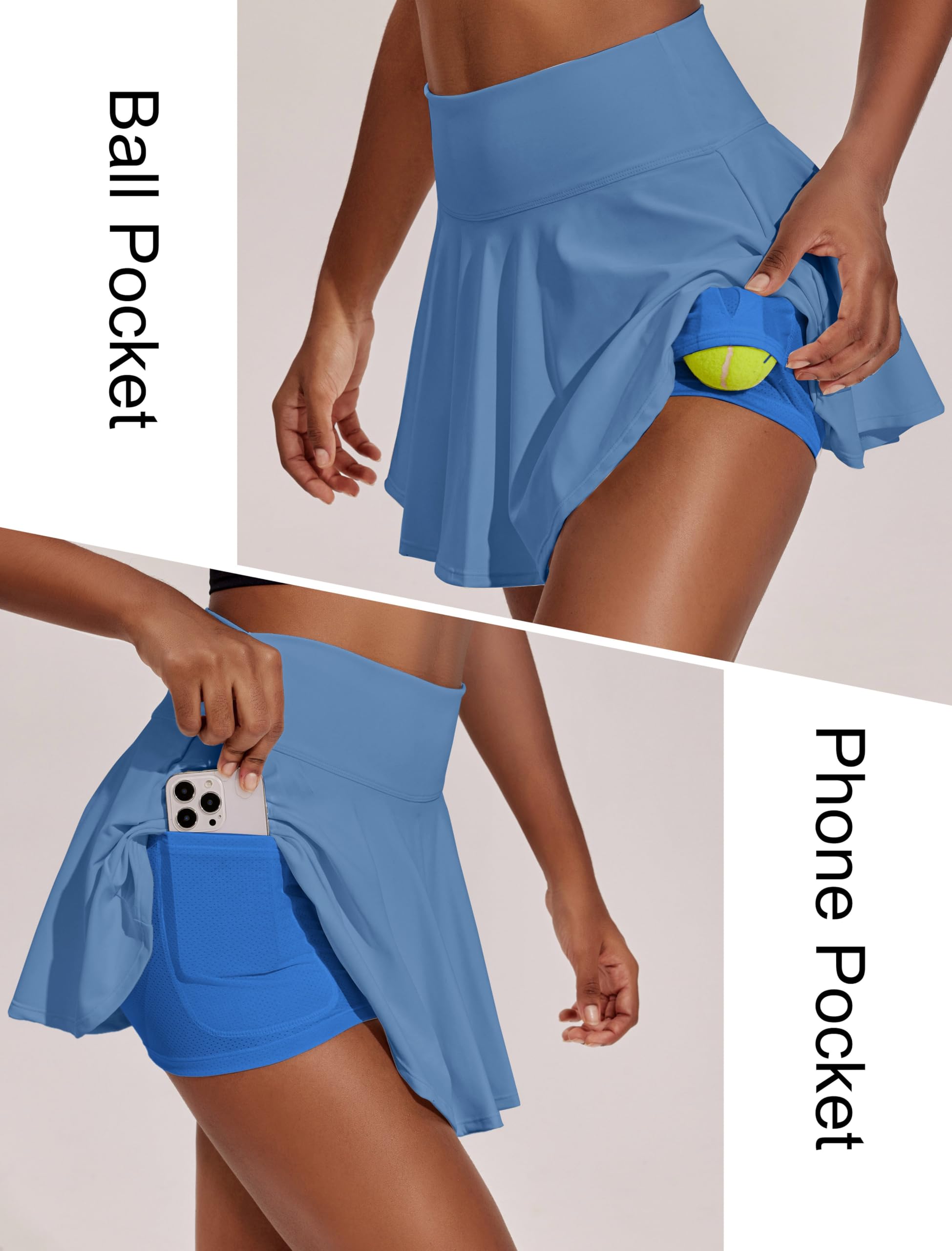 Stylish Pleat Design: The 14" workout skirt enhances your sporty-chic with cute flowy pleats, while making you move freely. Please consider your height and preferred length when ordering.