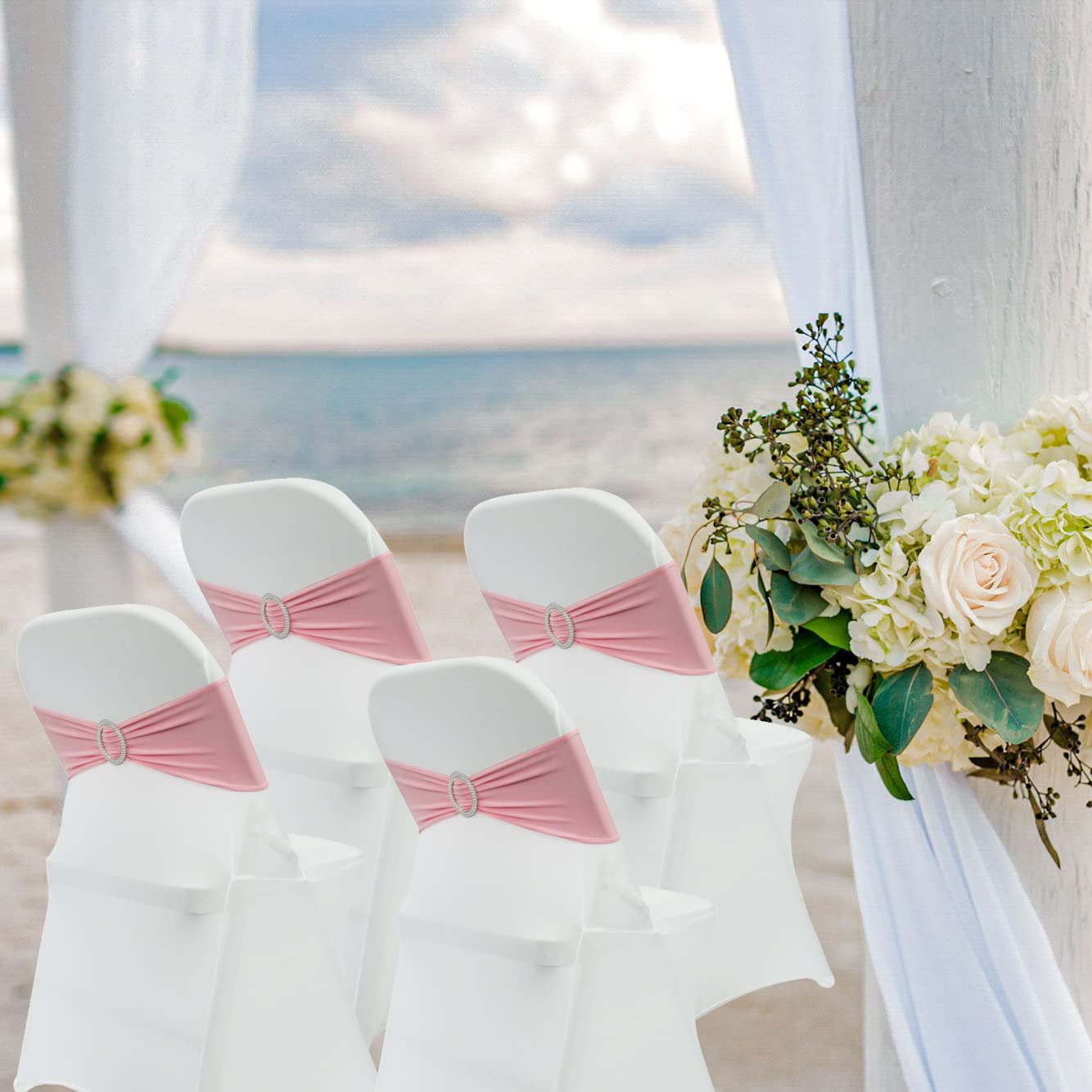 EXQUISITE SEWING&DESIGN:The spandex sashes with High-density rolled edge, reinforced and stitched inside, will not easily crack,Durable, not easy to deform, these wedding chair sash can be used repeatedly