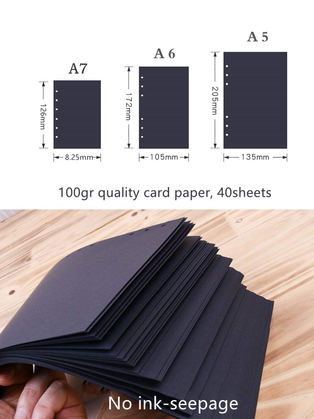 One set has 40 sheets(80 pages) Black Refillable Paper fits the popular 6 ring A7size binders/planners.