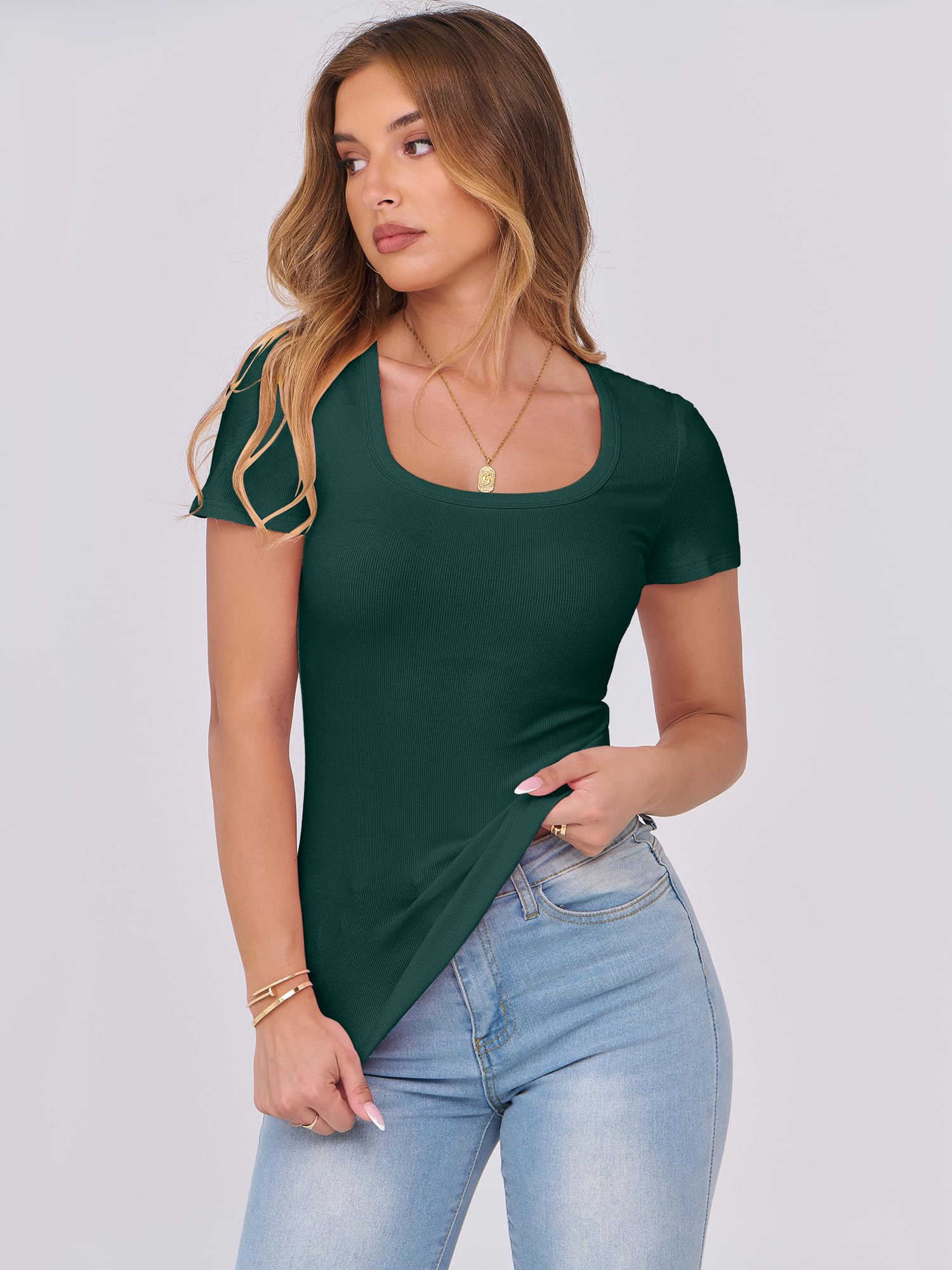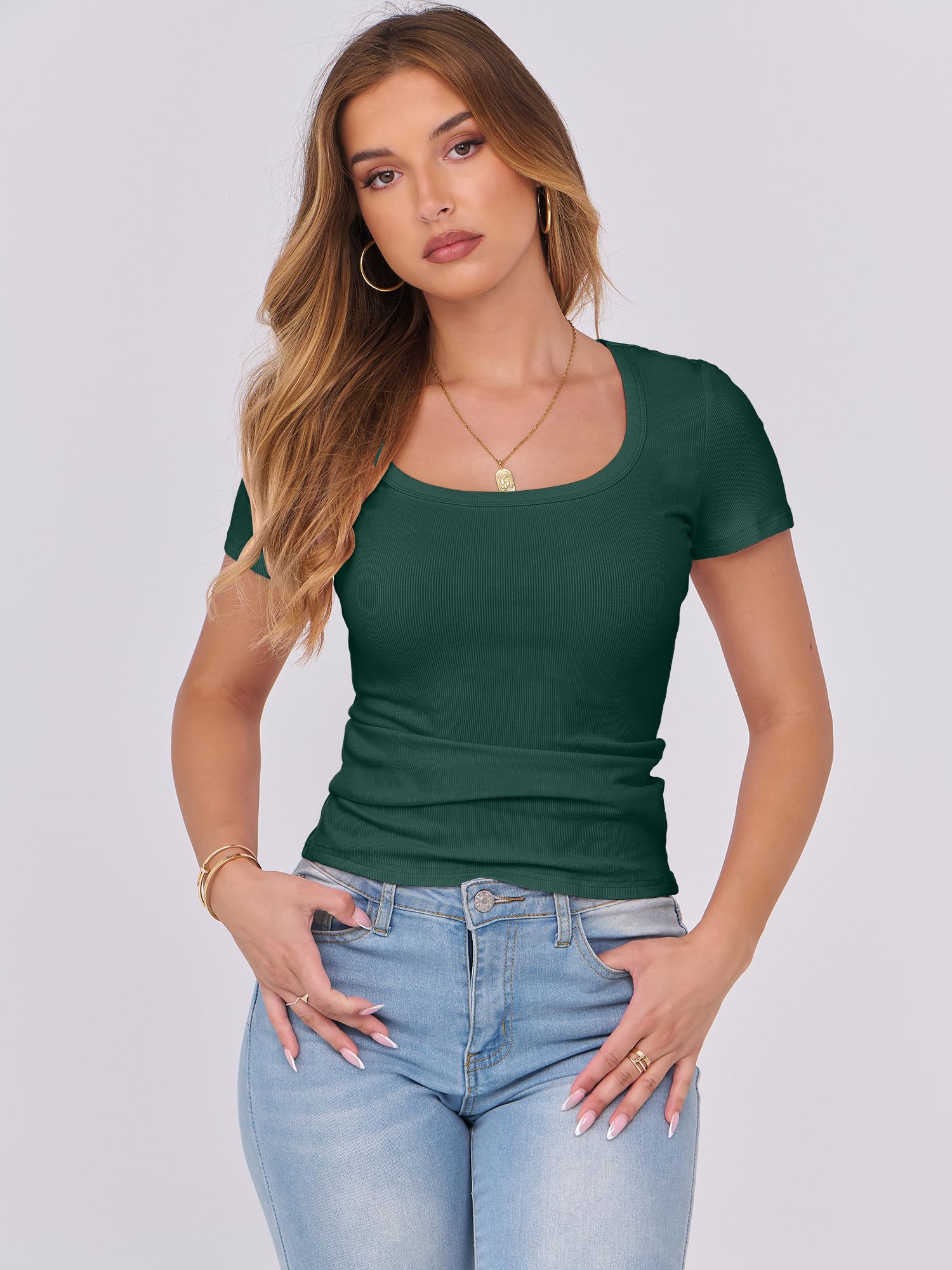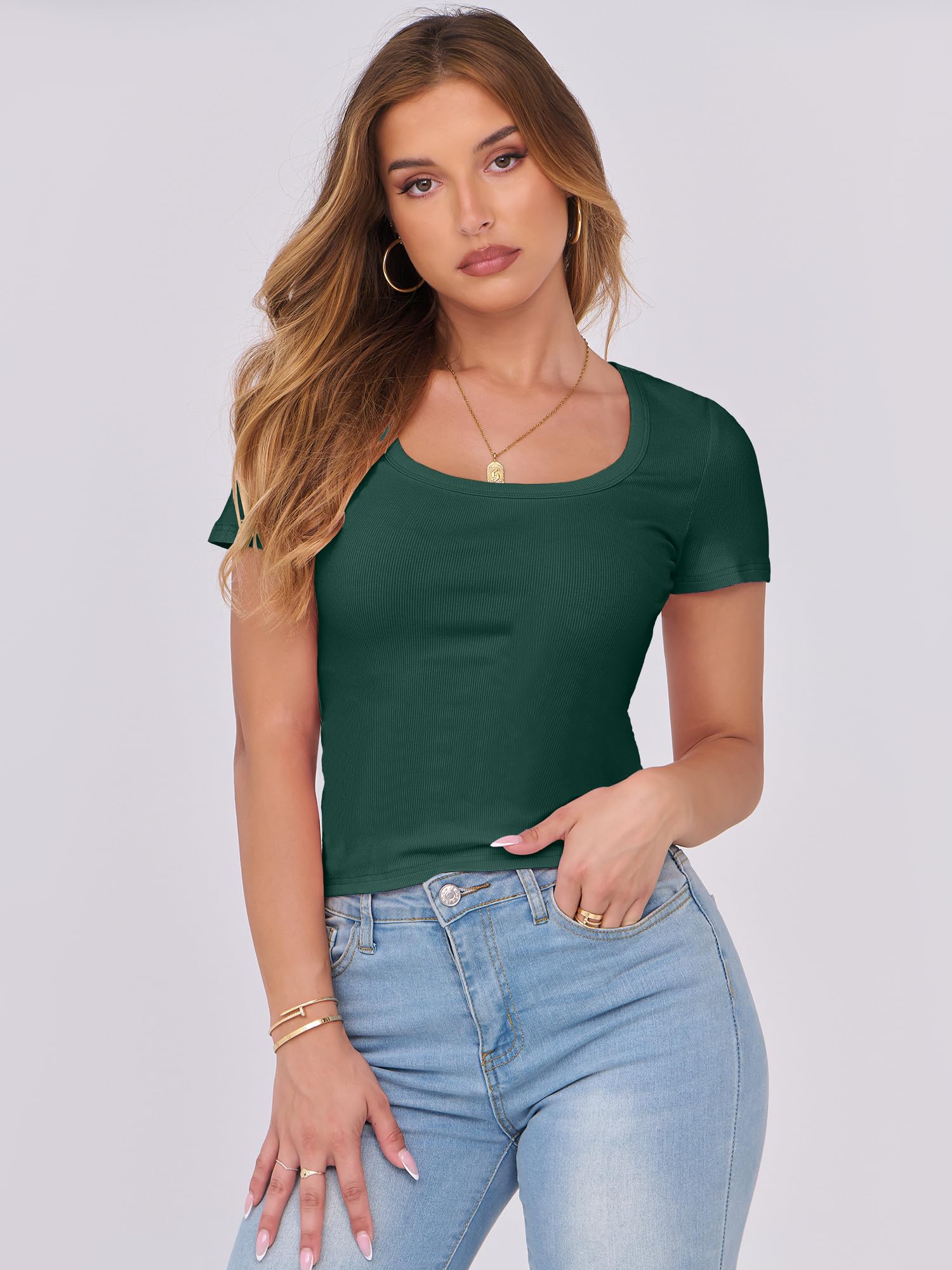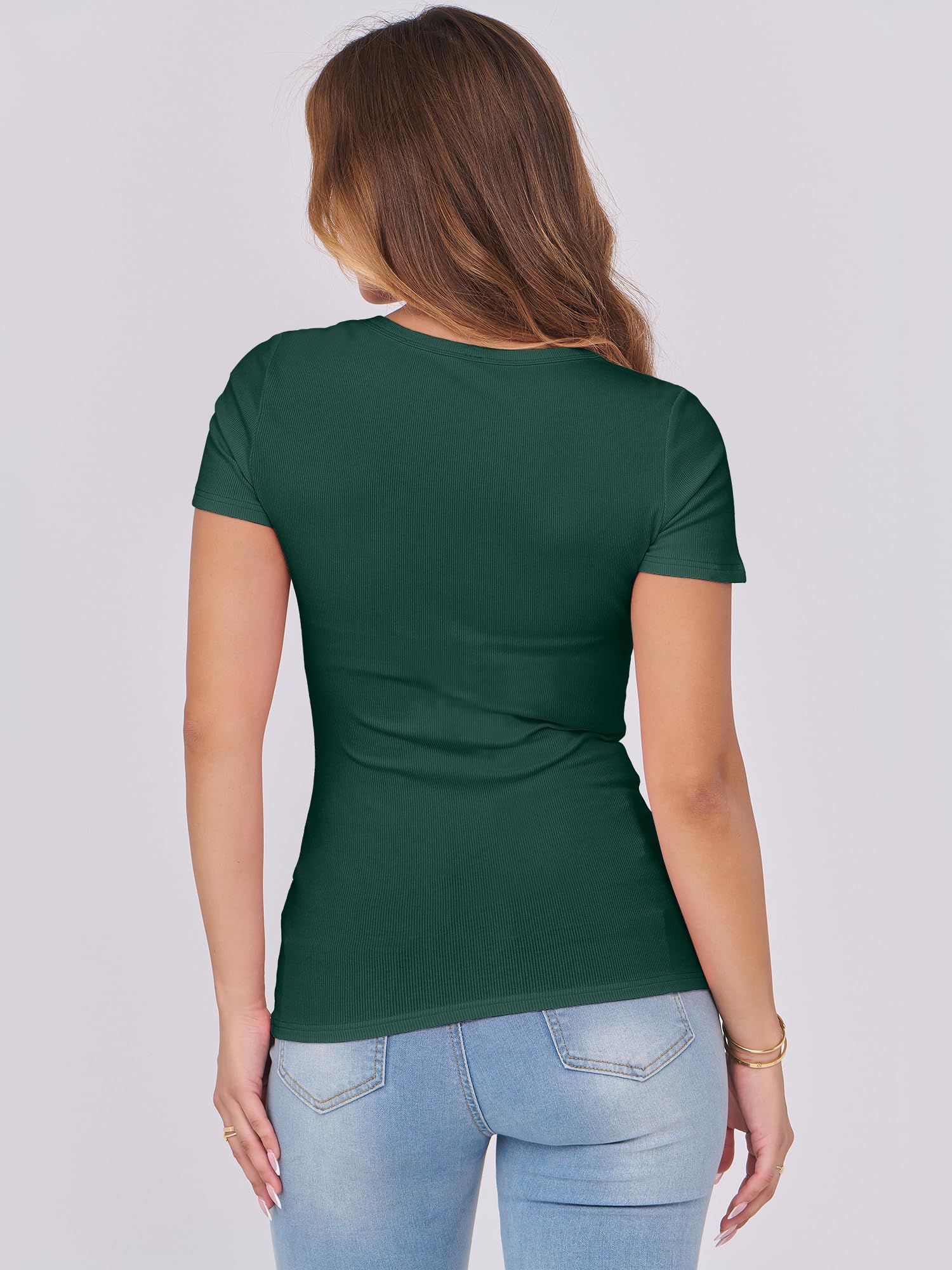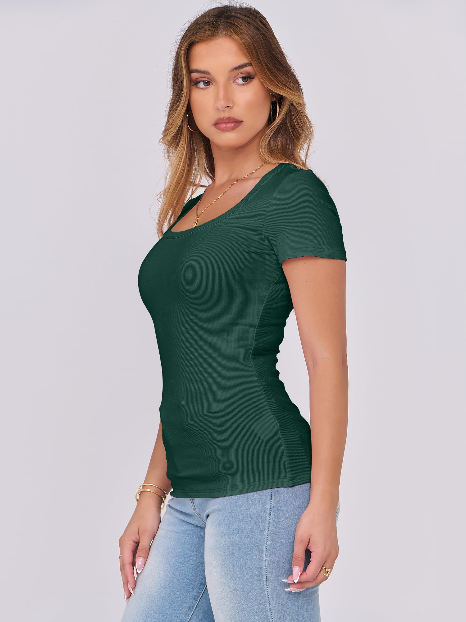 Features - Womens summer tops are designed with ribbed knit, scoop neck, short sleeve, slim fit. Suitable for daily wear, home, work, street wear, party, dates, vacation, shopping, cafes and other casual occasions.