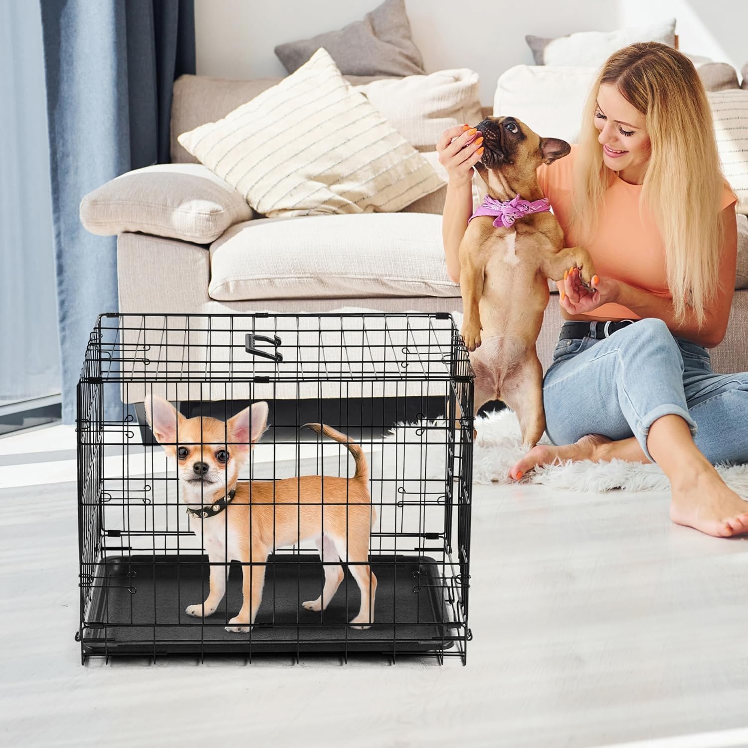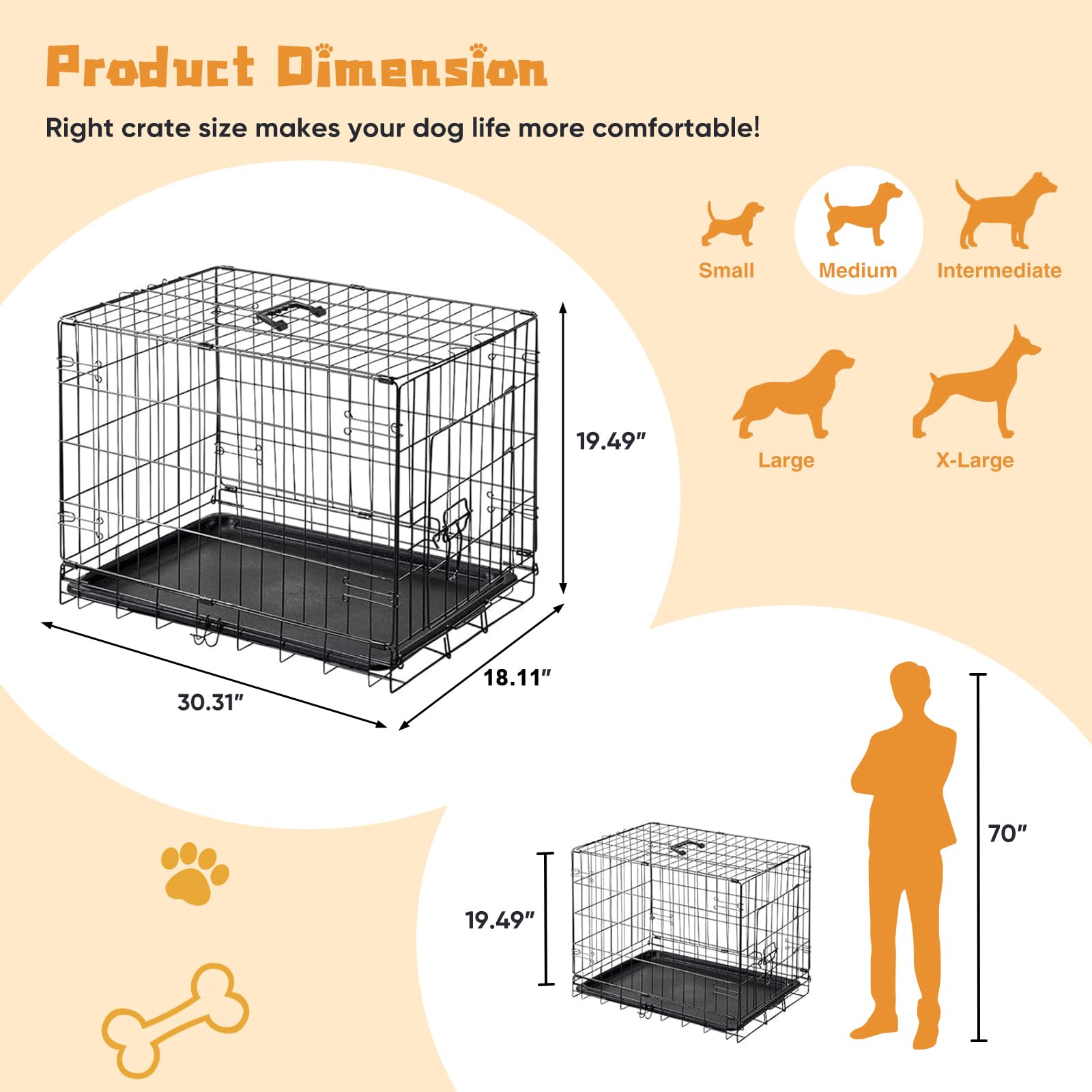 【Easy Cleaning & Maintenance】Features a durable ABS composite tray, which are leak-proof and easy to clean, ensuring a hygienic and comfortable environment for your pet. With this easy-to-clean tray, you can keep the crate tidy with minimal effort, providing a clean and enjoyable space for your furry friend.