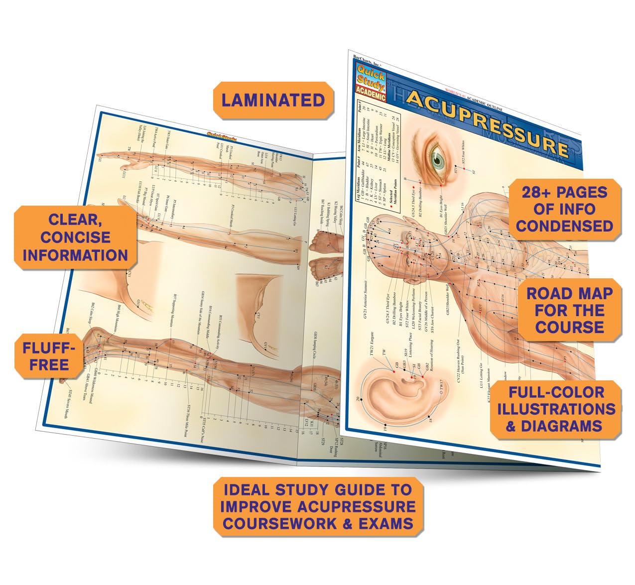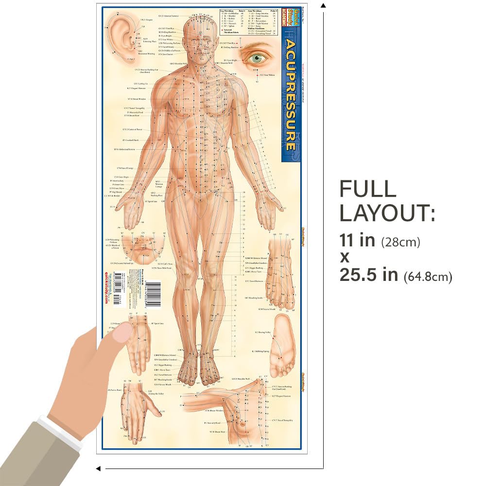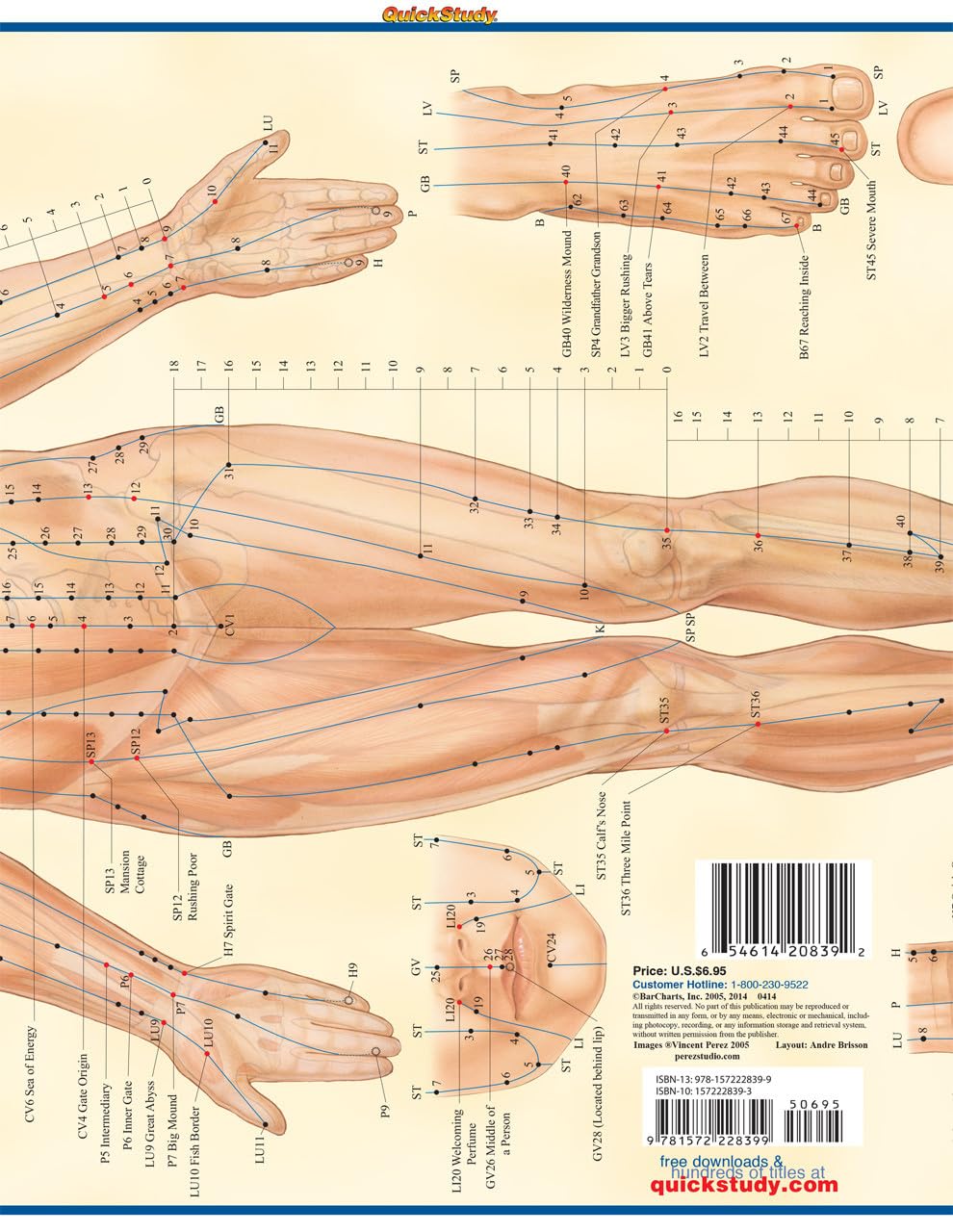 Complete, labeled illustrations of acupressure points in the human body. From pre-teen to pre-med, this chart is loaded with beautifully illustrated diagrams, clearly and concisely labeled for easy identification. Illustrations by award-winning medical illustrator Vince Perez.
