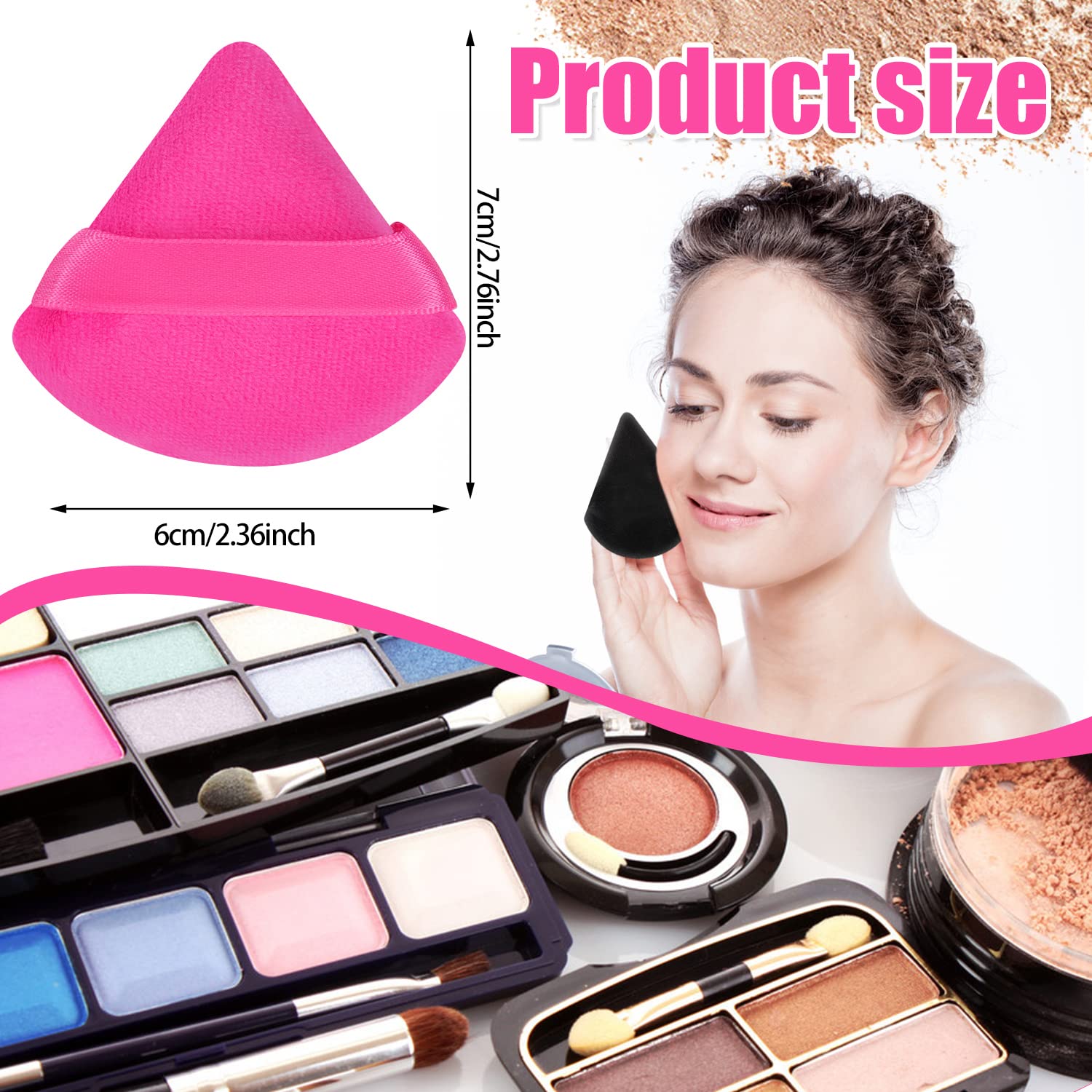 【Normal size and hold well】each powder puff measures about 2.76 inch/ 7 cm, the normal size can fits your hand well, each makeup puff comes with 1 strap for you to hold well and easier to use the powder applicator, the triangle shape makes the makeup on T-zone easier