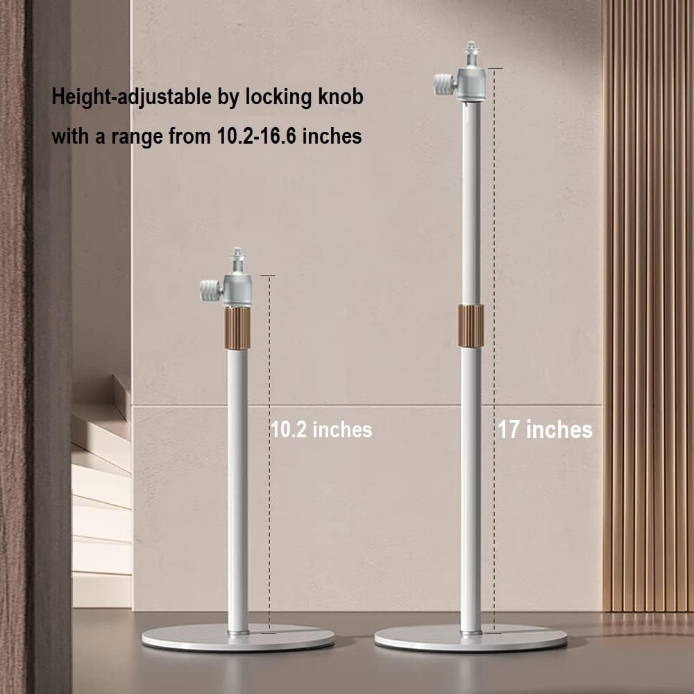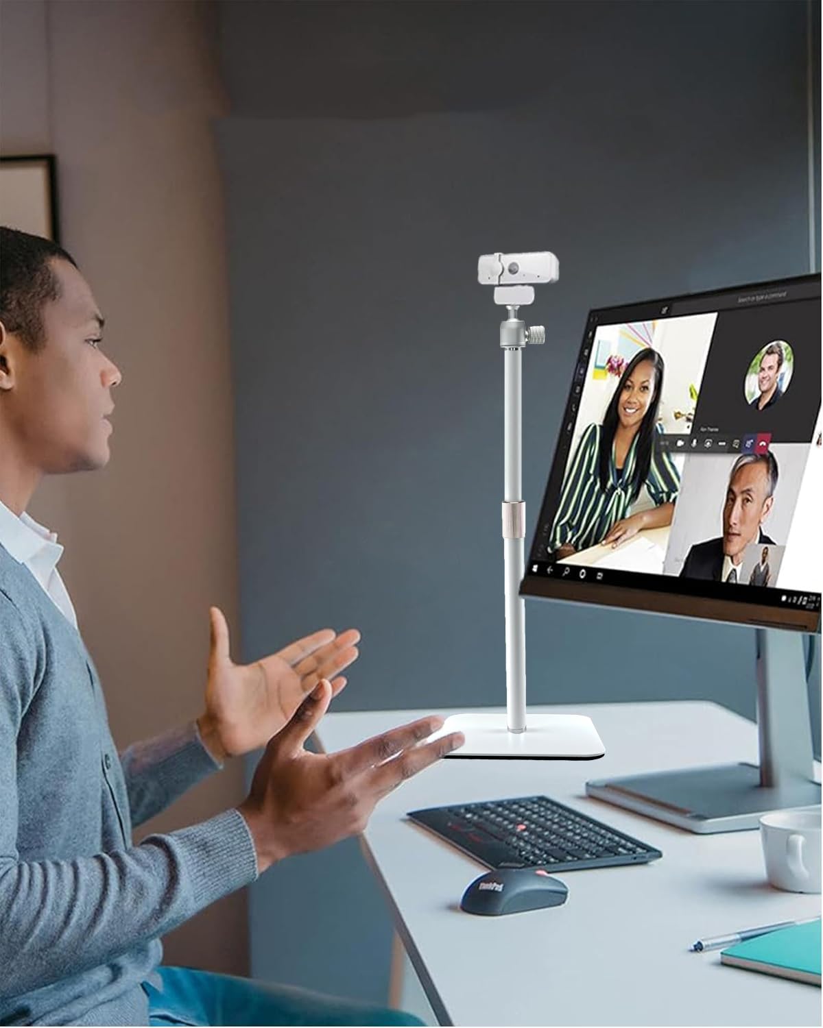 White Webcam Stand Max. Height: 17 inches/40.5 centimeters which could be rotated 360 degrees; Load Capacity: 1.1 pounds/0.5 kilograms. Telescopic type, convenient to carry. The adjustable Pole allow you to carry it with you easily and adjust the suitable angle and height.