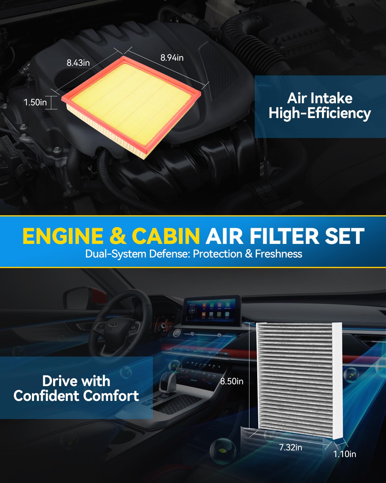 [Easy Installation]: Designed for a direct OE fit. The cabin filter typically swaps out in minutes behind the glovebox with no tools required. The engine air filter is equally straightforward under the hood. Our clear instructions make DIY installation quick and convenient for anyone