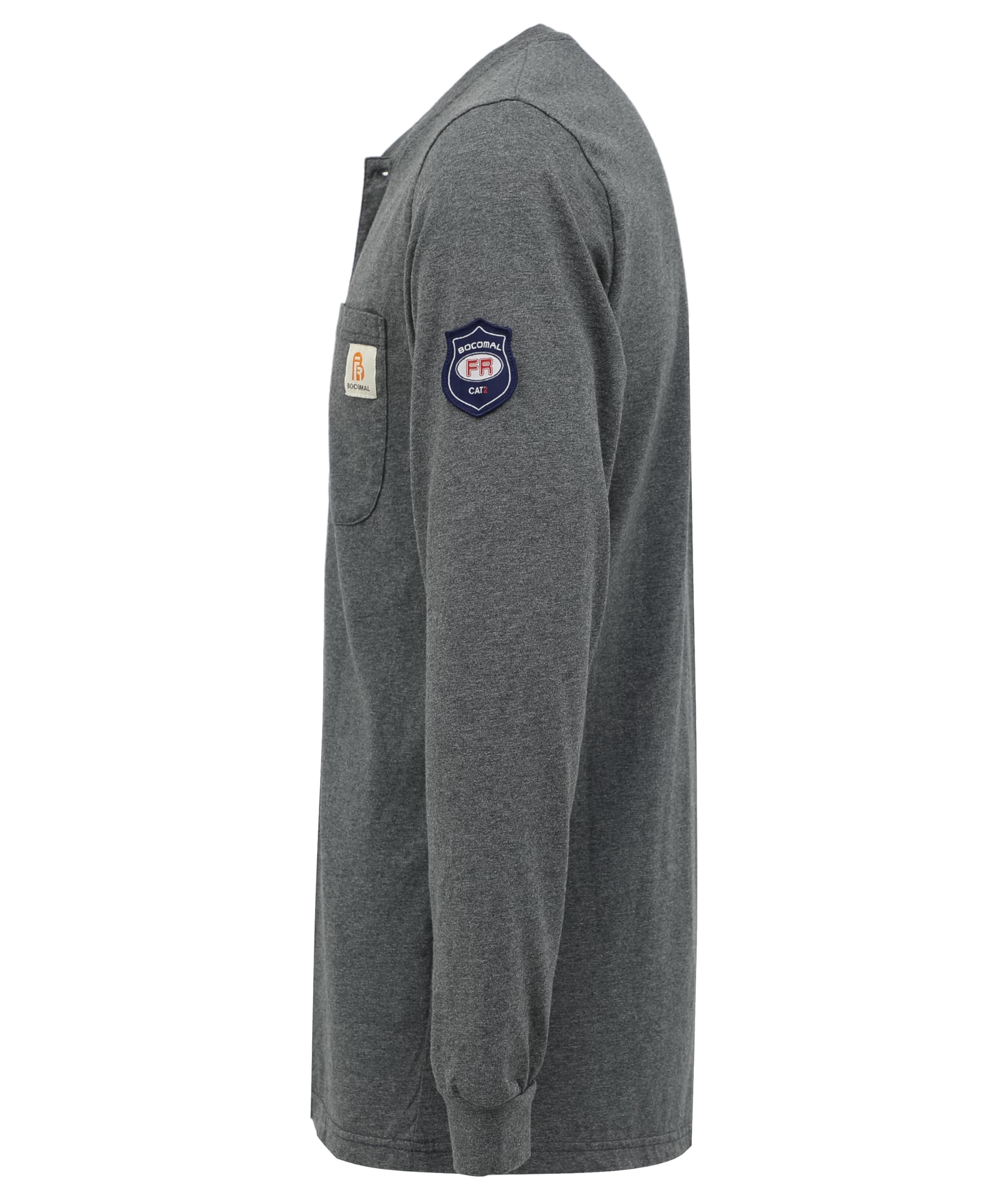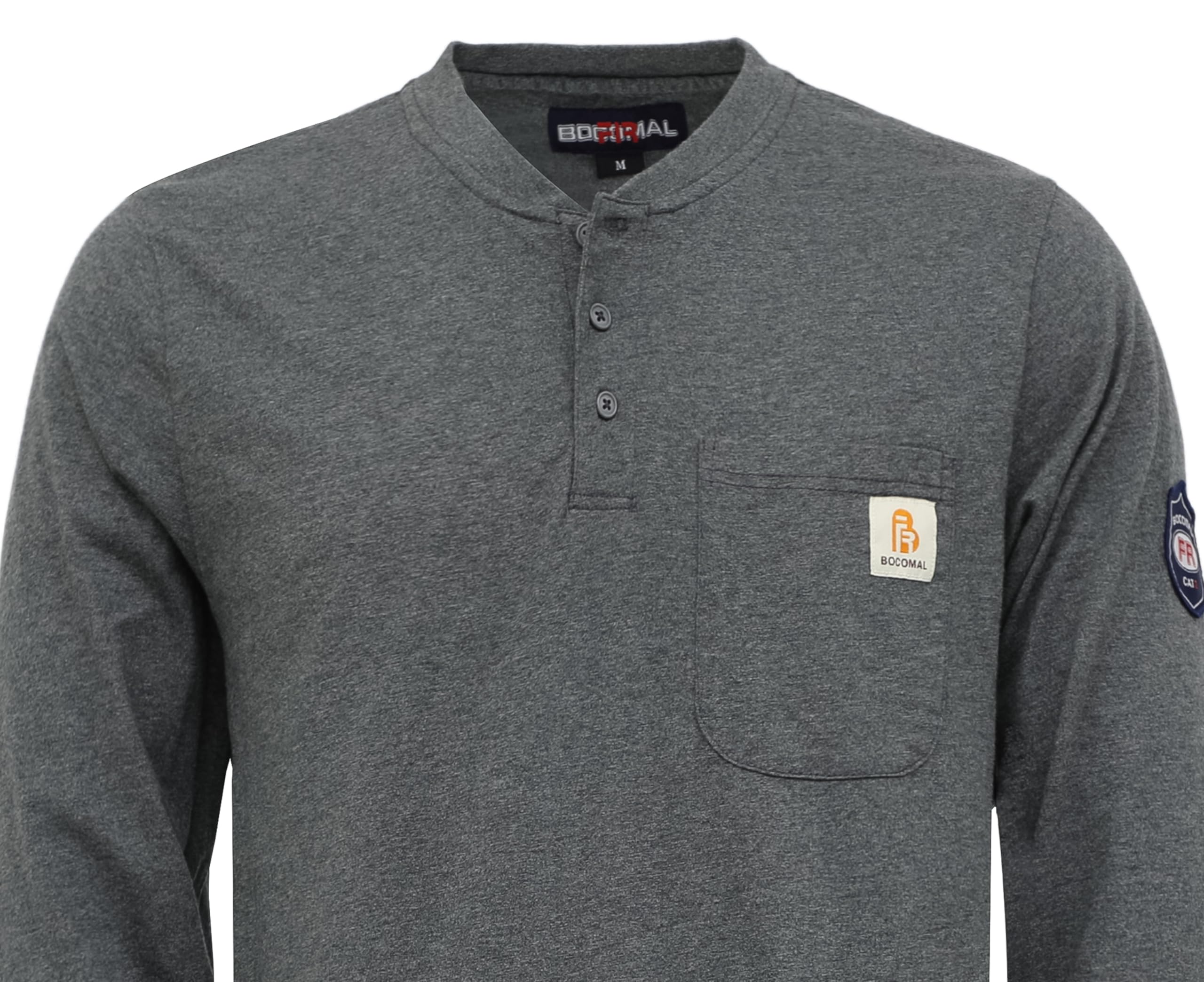 FR MATRIALS:5.5OZ Cotton Knit FR Treated,FR Buttons,FR Sewing Threads!Clear FR Tag on arms and bottom front.More FR info On Neck Tag About UL Certification.We Attached A Small Sample Inside Package For Cunstomers Simple FR Try