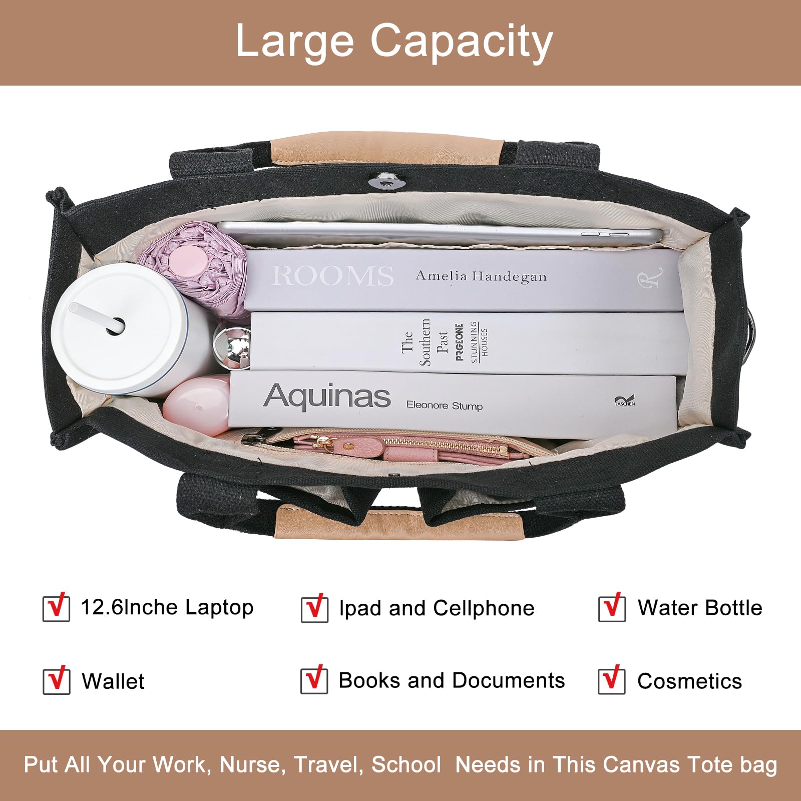 Premium GRS-Certified Canvas: Crafted with high-quality, lightweight, and waterproof canvas fabric, this eco-conscious tote bag for women combines durability with sustainability. GRS-certified (Global Recycled Standard), it meets rigorous environmental and ethical criteria while retaining a soft touch and easy-to-clean design—perfect for daily use.