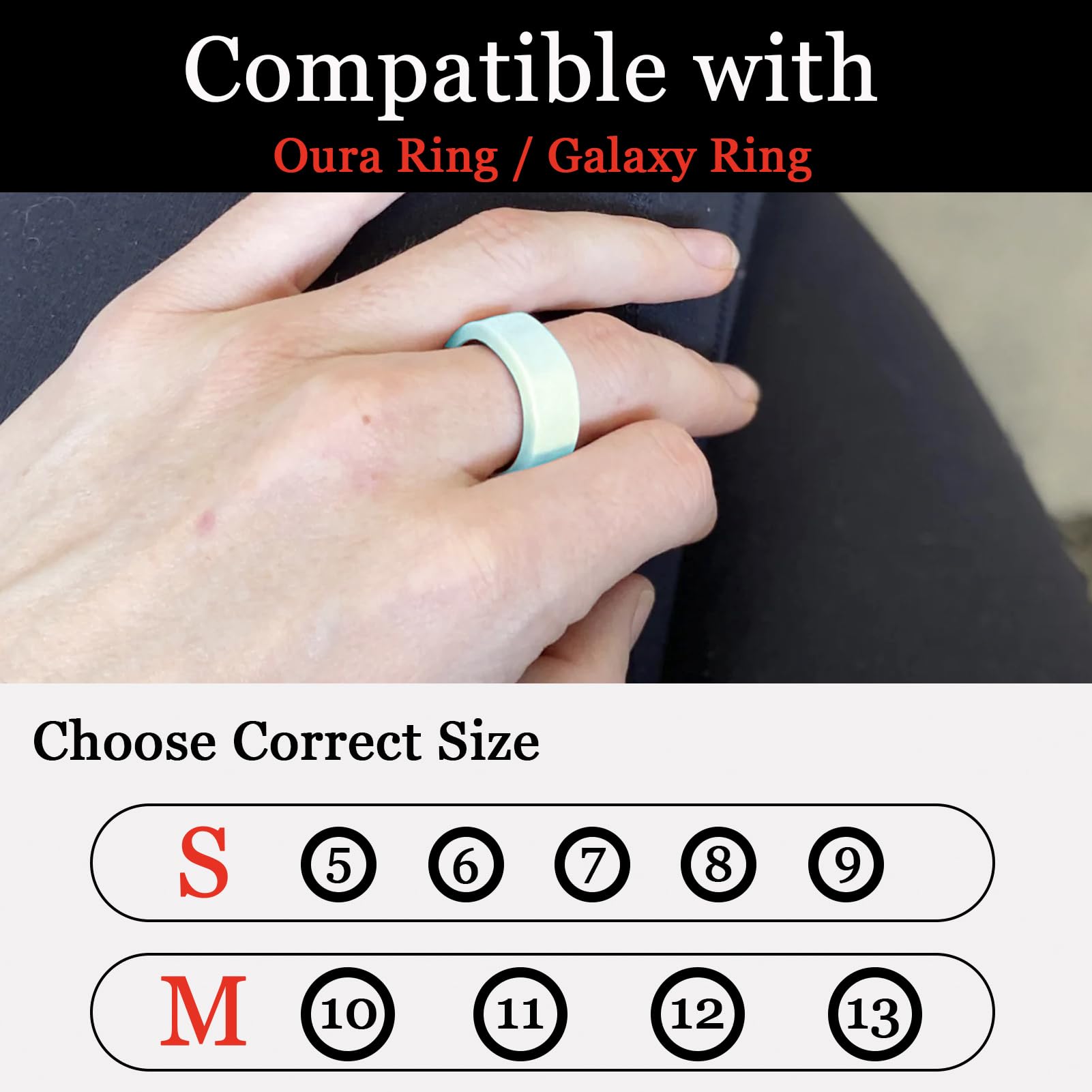 Two Size Options: The high elasticity of the material makes it suitable for various ring sizes. Choose size S for ring sizes 5, 6, 7, 8, 9, and size M for ring sizes 10, 11, 12, 13