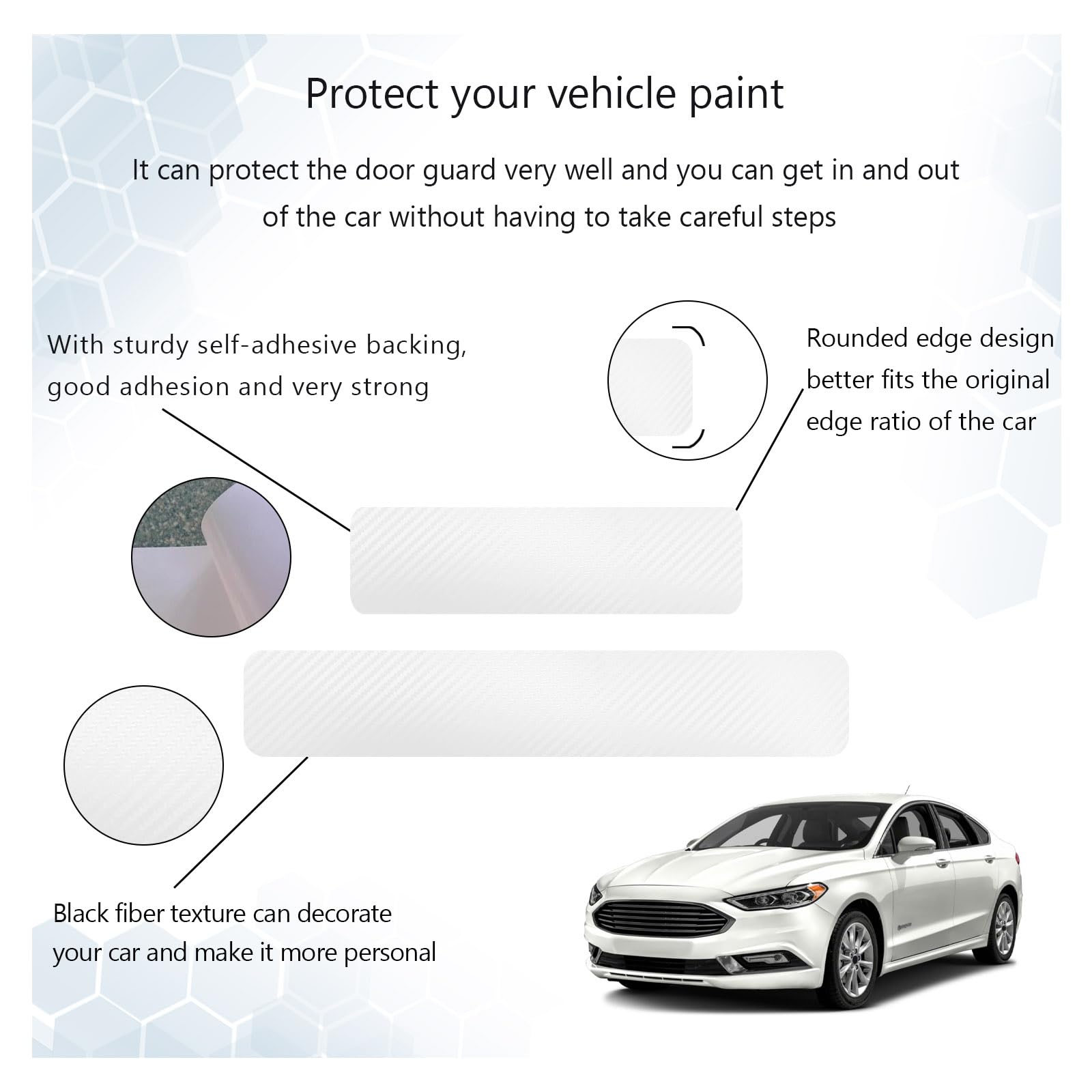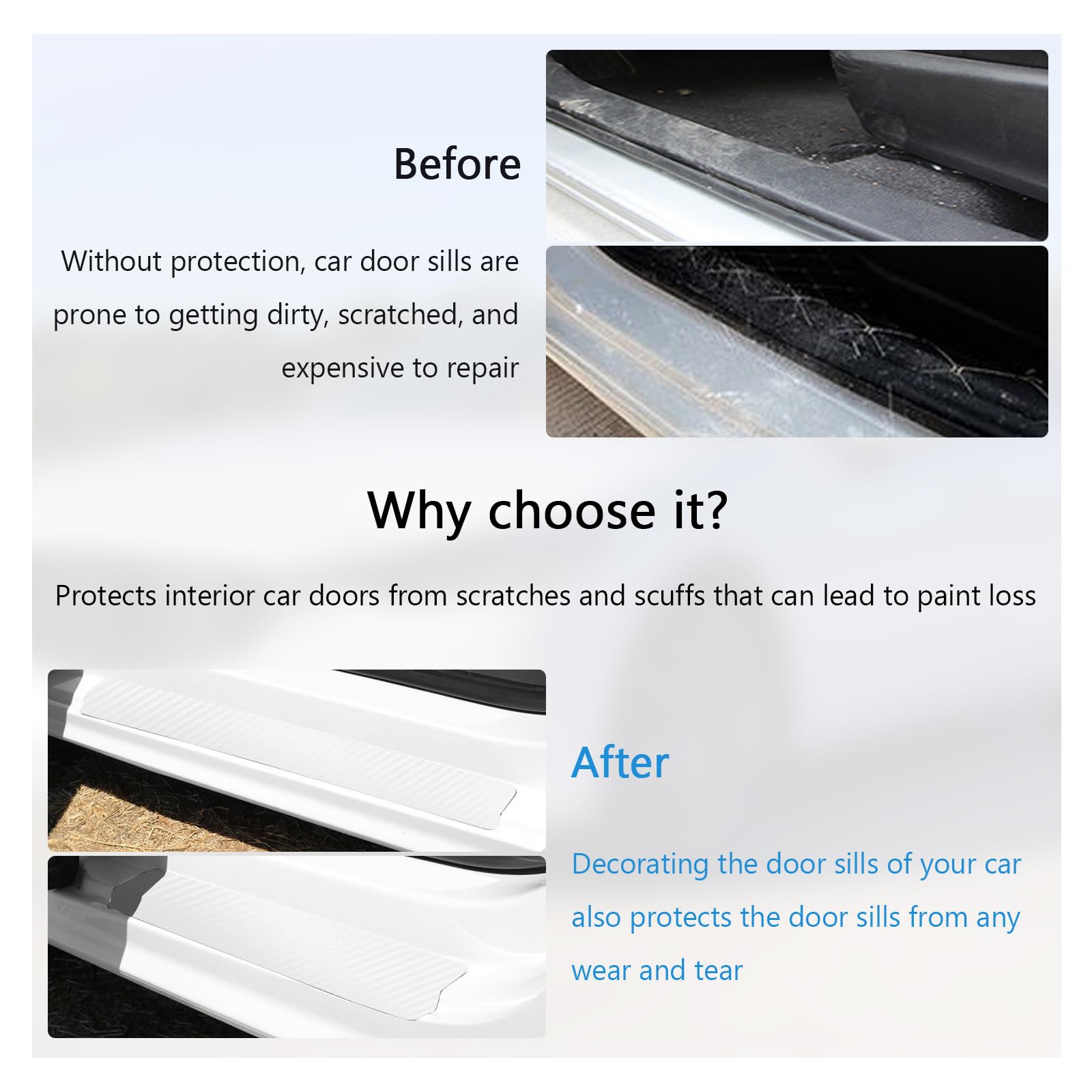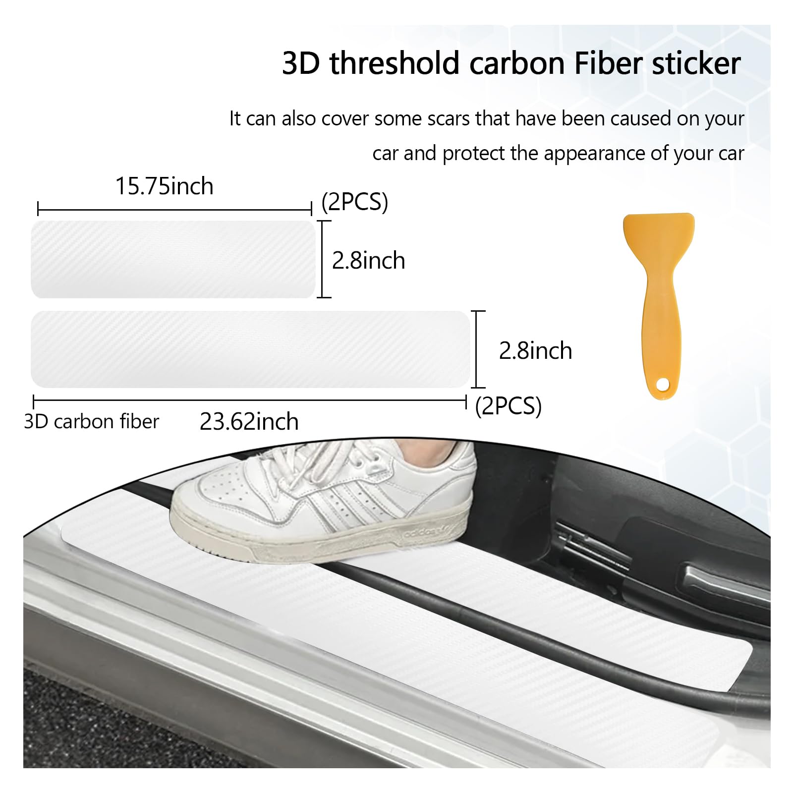 【Stylish Decoration】: Featuring a 3D or 5D carbon fiber textured surface, our car door sill protector adds a dynamic flair to your vehicle. Their modern design complements the overall aesthetics of your car, enhancing the aesthetics while showing off your unique taste and personality