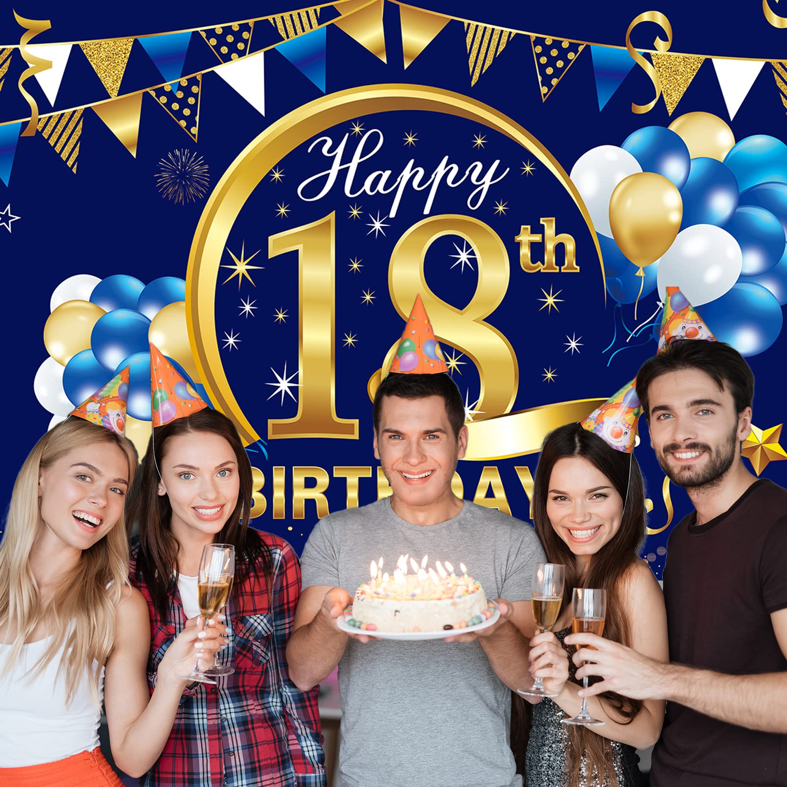 [Unique design] - Unique Blue Gold color, with exquisite party elements, such as balloons, flags, fireworks, etc. The extra-large golden number "18" is very eye-catching, which sets off the sweet party atmosphere for the 18th birthday, enough to create an 18-year-old Happy birthday theme party.