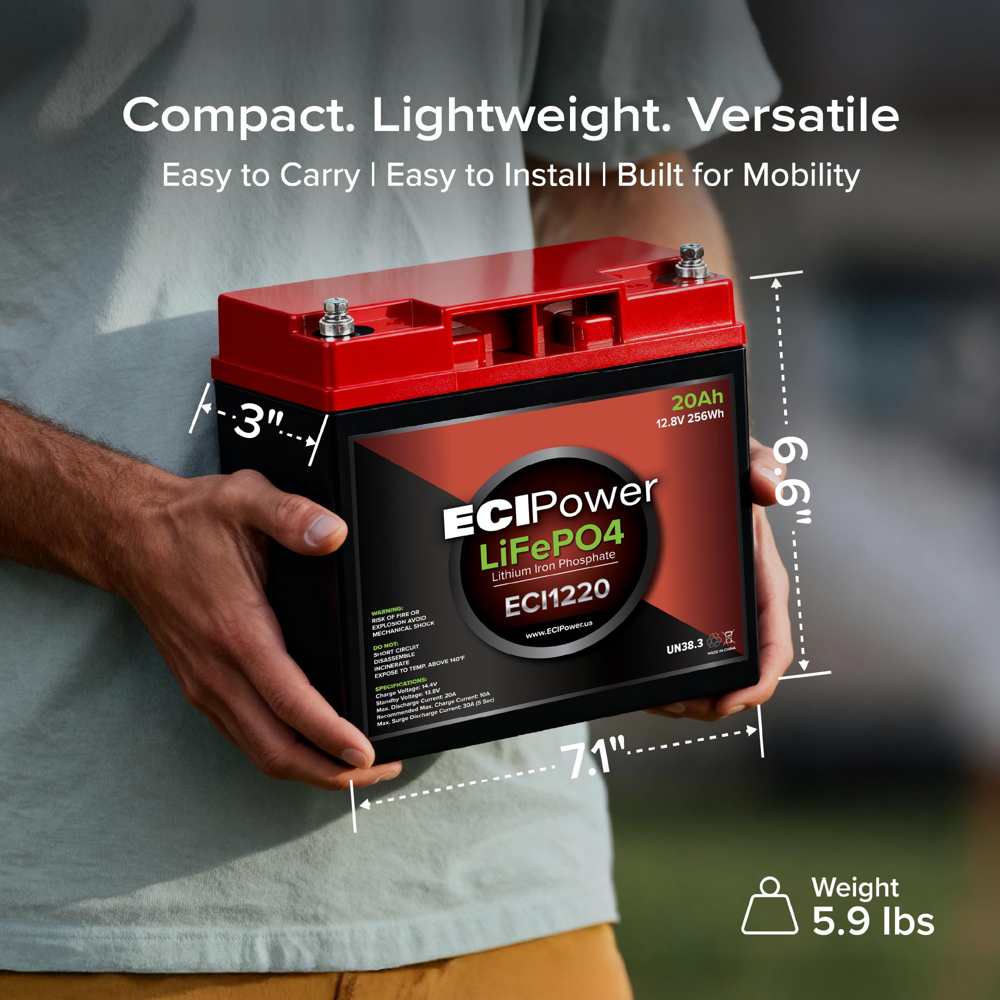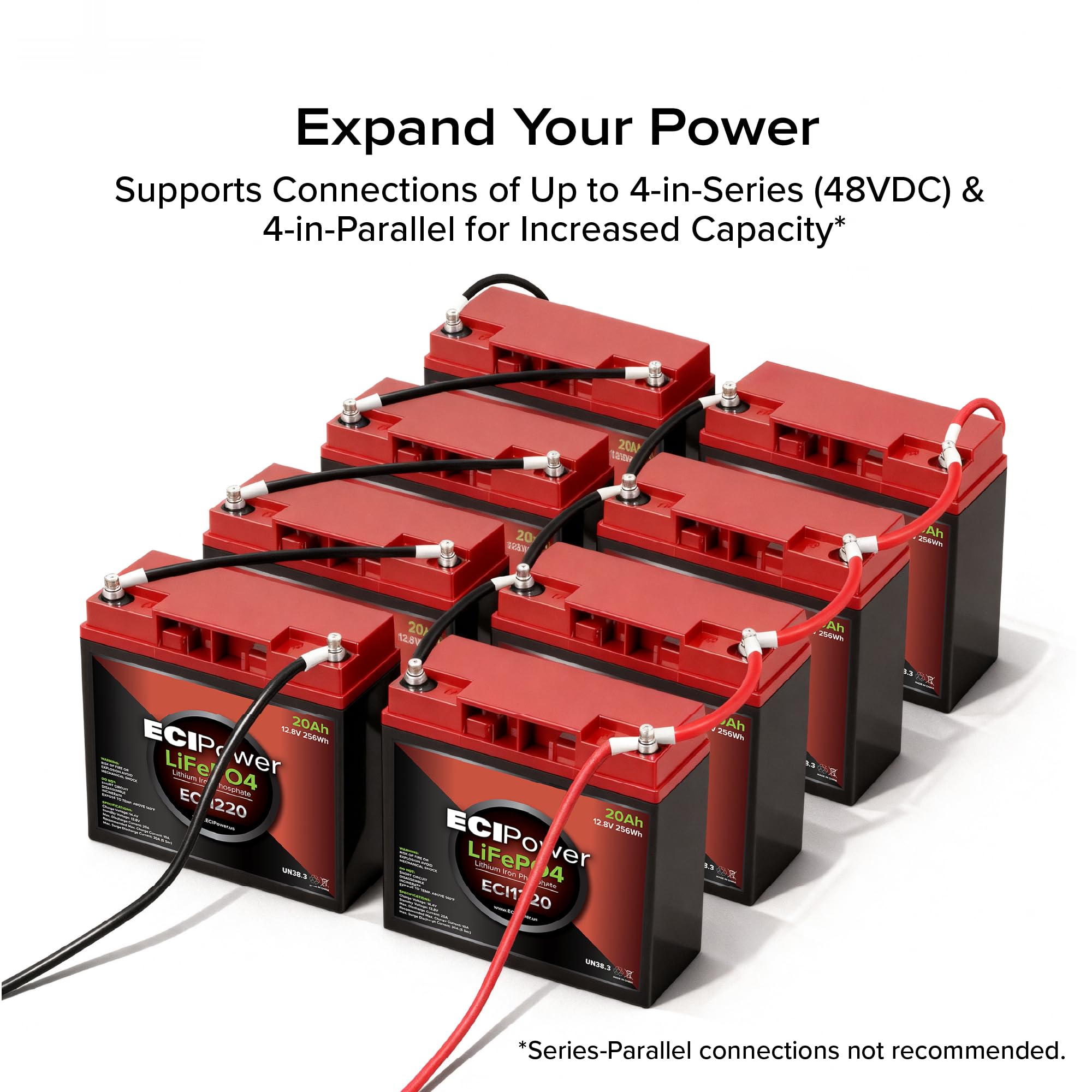 Unmatched Technology: The ECI Power LiFePO4 battery is designed to meet the needs of modern energy applications while exceeding performance comparable to even the most expensive batteries on the market. Also supports expansion up to 4 batteries sequenced in either series at 48V 20Ah, or in parallel at 12V 80Ah.