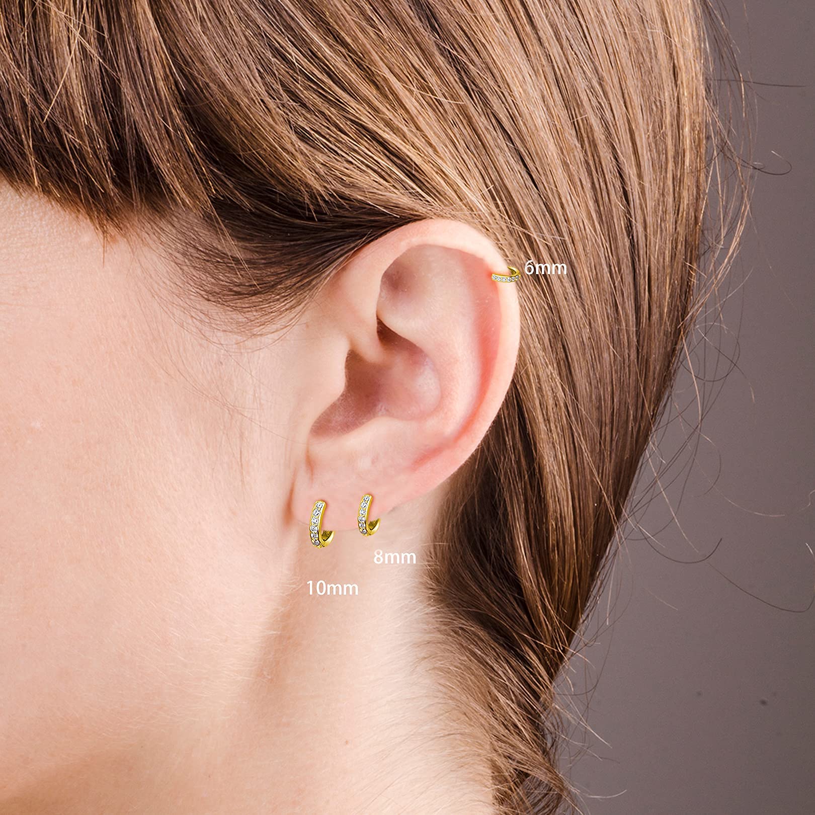 【PACKAGE INCLUDES】Order includes 3 Pairs 6/8/10mm(0.24/0.31/0.4in) Small Cubic Zirconia Hoop Earrings. The Small Hoop Earring is Cuff Design, Easy to Open and Close. Note:The 925 Sterling Silver Needle is very soft, Please do not Use too much Force When Opening and You can Straighten it Yourself if it bent.