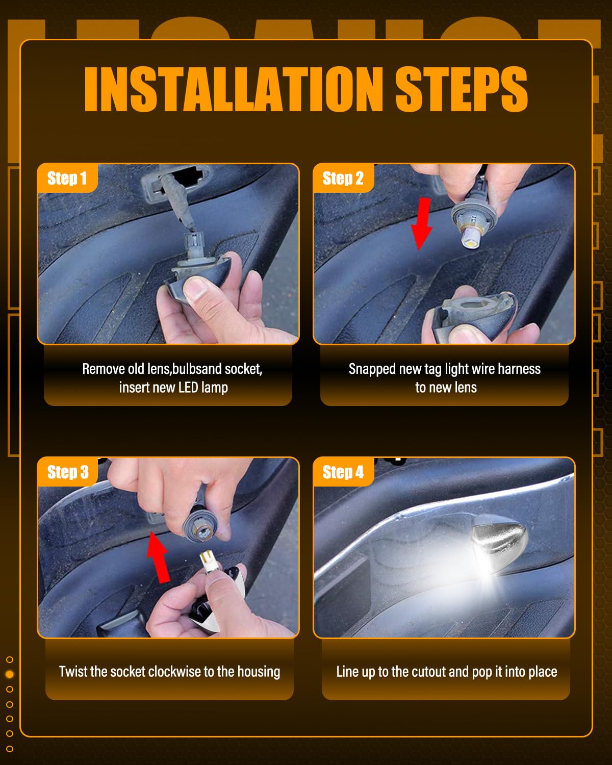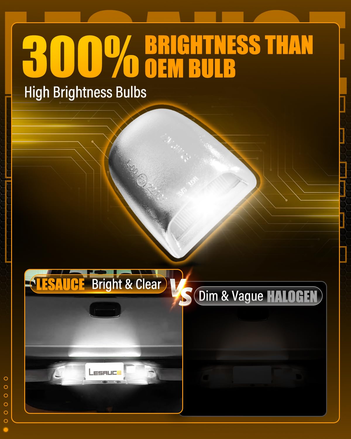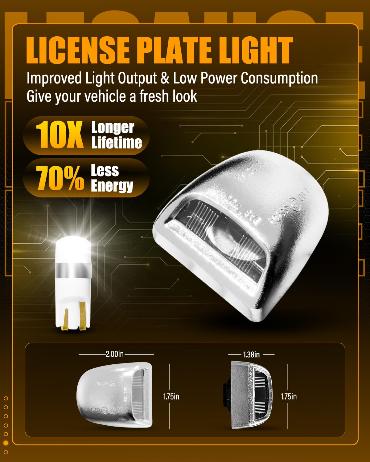 EXTREMELY BRIGHT: Each lamp has 6,000K white 194 led bulb. 300% brighter than your factory license plate lights, maximize the rear end illumination but no blind to back up camera