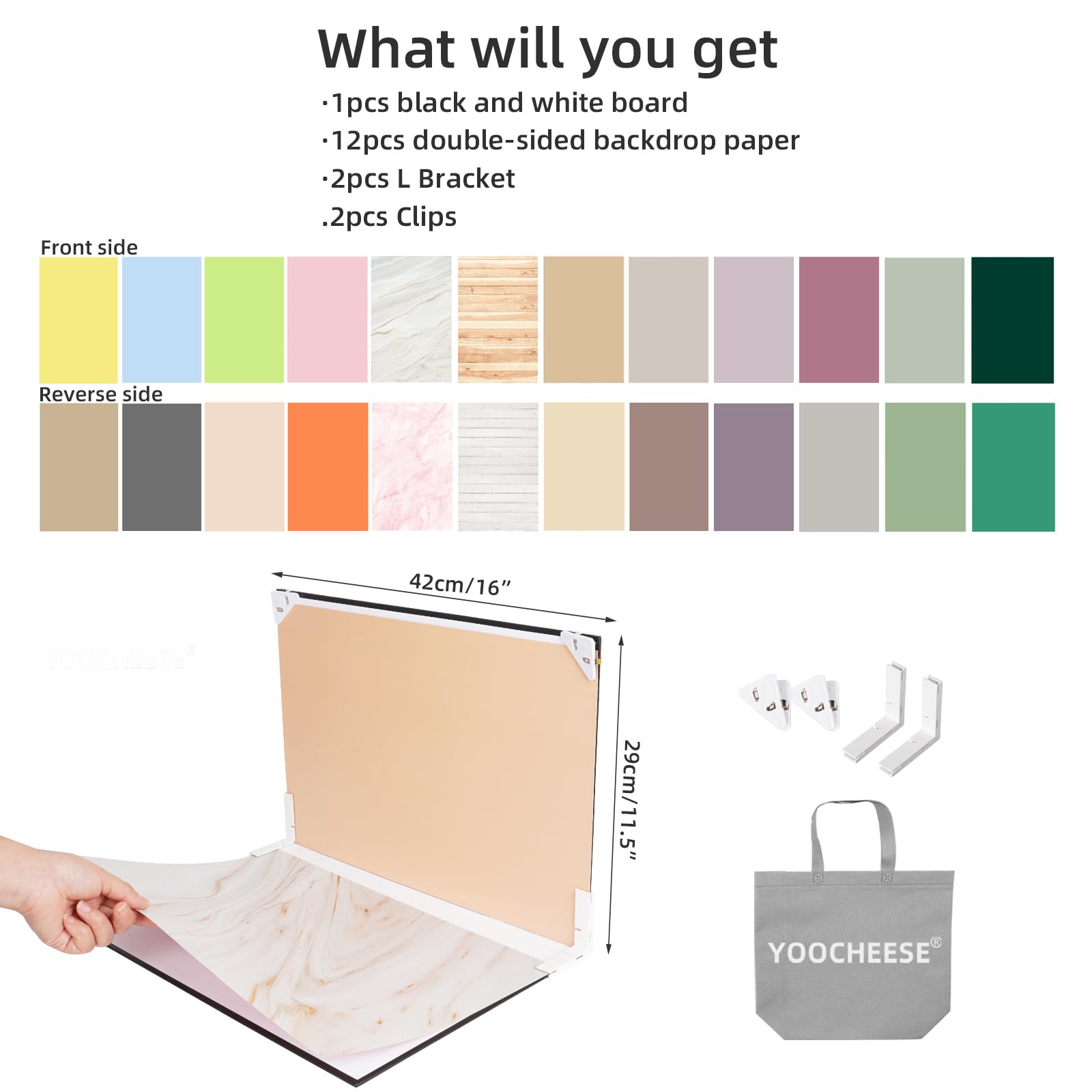【Easy Setup】: Simple to set up with a L bracket. The backgrounds interchangeable too. With a carry bag, easy storge in your photogrpahy studio.